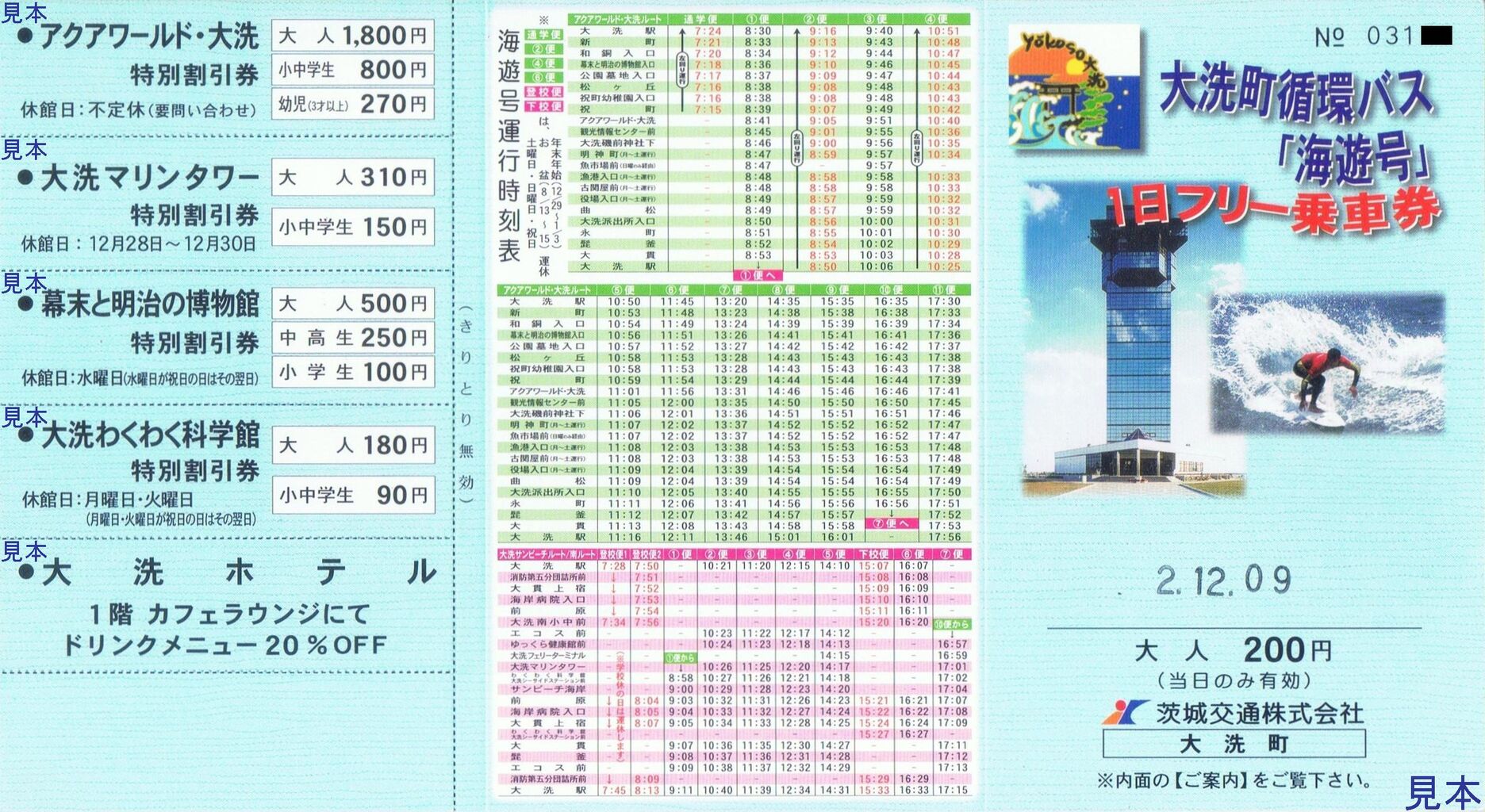 《大洗町循環バス「海遊号」1日フリー乗車券(2020(令和2)年12月9日収集)》