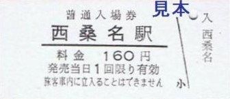 西桑名駅の入場券については平成16年収集分と比較して「断線横の小のフォントが異なる」「駅のフォントが異なる」「券面の文字の位置が異なる」という違いがあります。楚原駅の入場券には変化が無いようです。