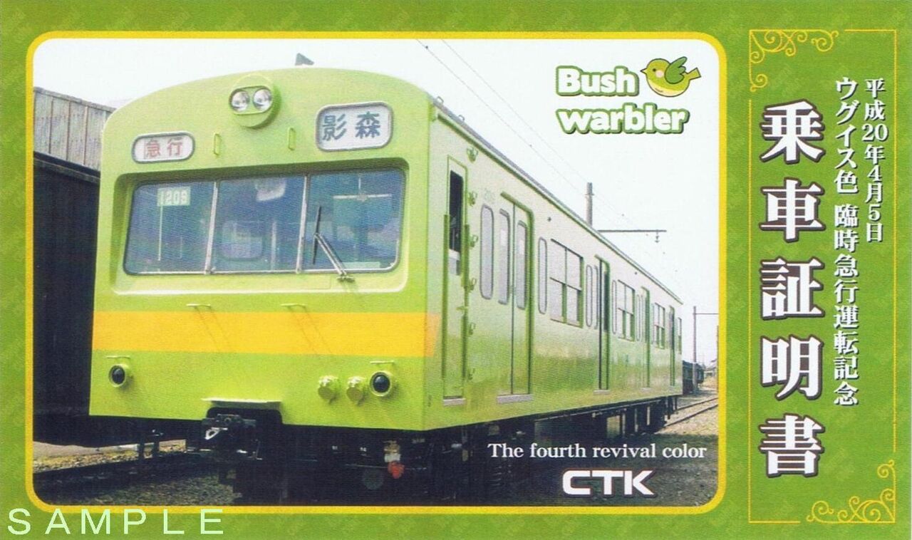 《ウグイス色臨時急行運転記念乗車証明書(平成20年4月5日)》