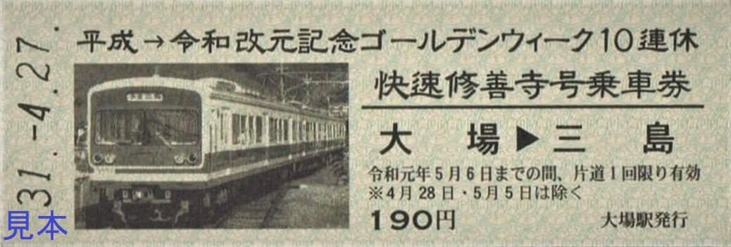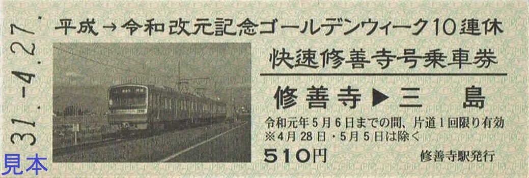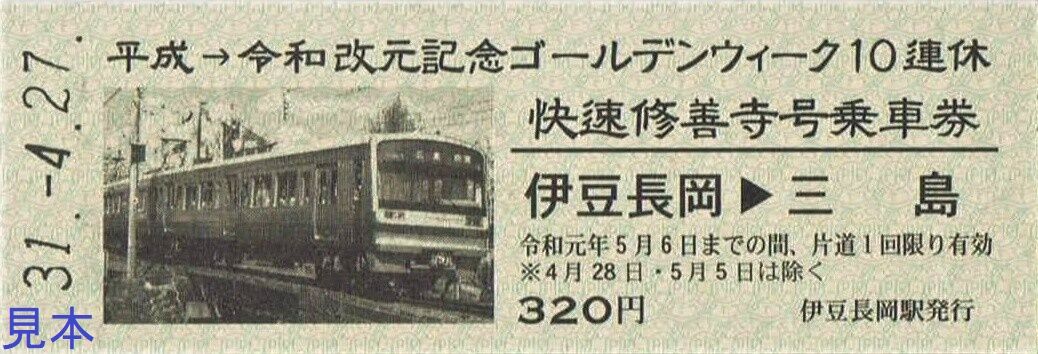 《平成→令和改元記念ゴールデンウィーク10連休快速修善寺号乗車券(2019年4月27発売)》