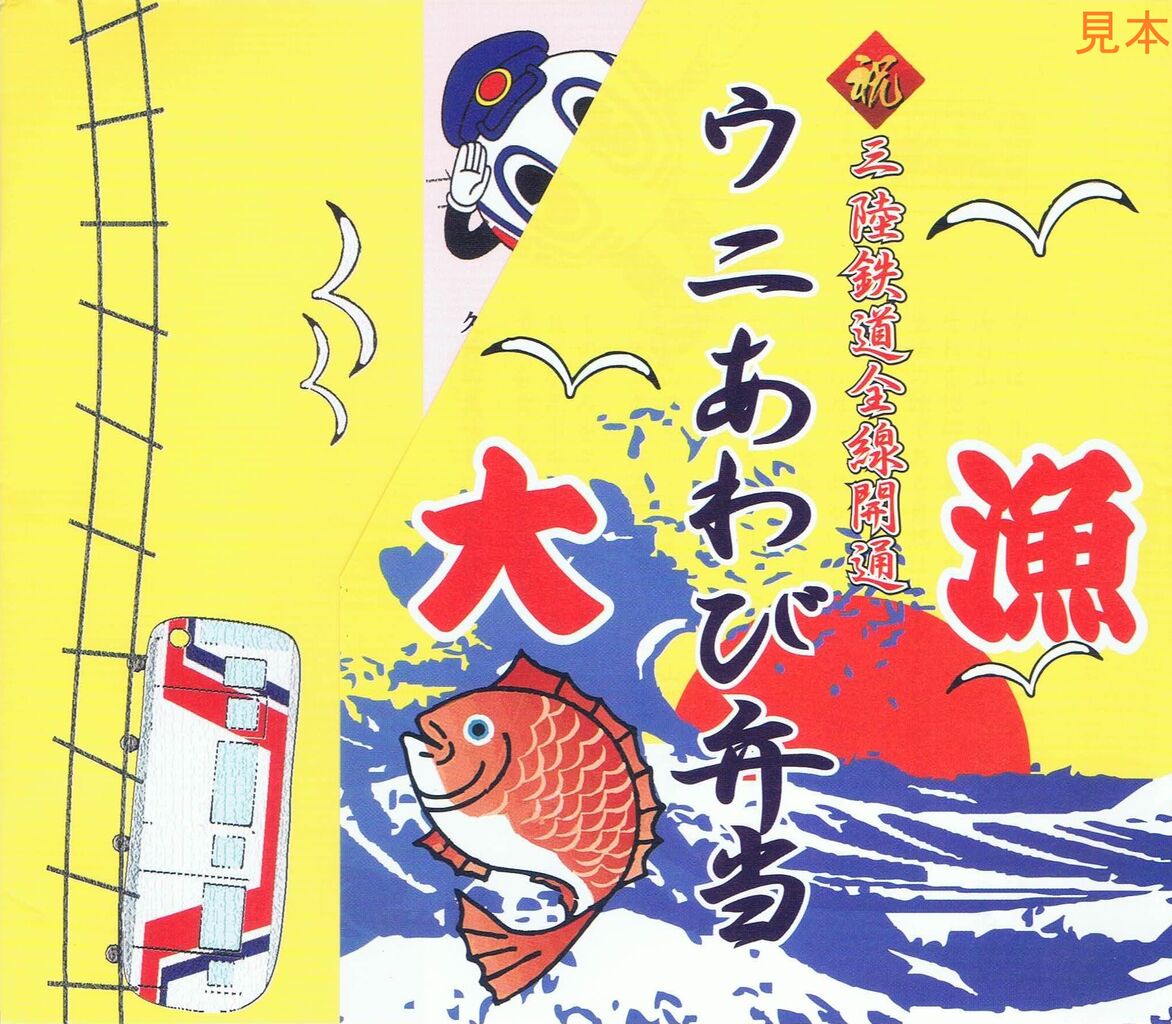 3種類の中では最高額の税込1,700円。掛紙(写真左)には先代のお座敷列車北三陸号に使用されていた36-2100形(さんりくしおかぜ号)の写真入り。とにかく『うに』だけ食べたい人には最高の弁当。産地以外でうにを食べると下手をすれば苦味のあるものだったりしますが、三陸鉄道の弁当ではそのようなことはありません。まろやかでいつまでも飽きずに食べ続けていられる味です。======================================