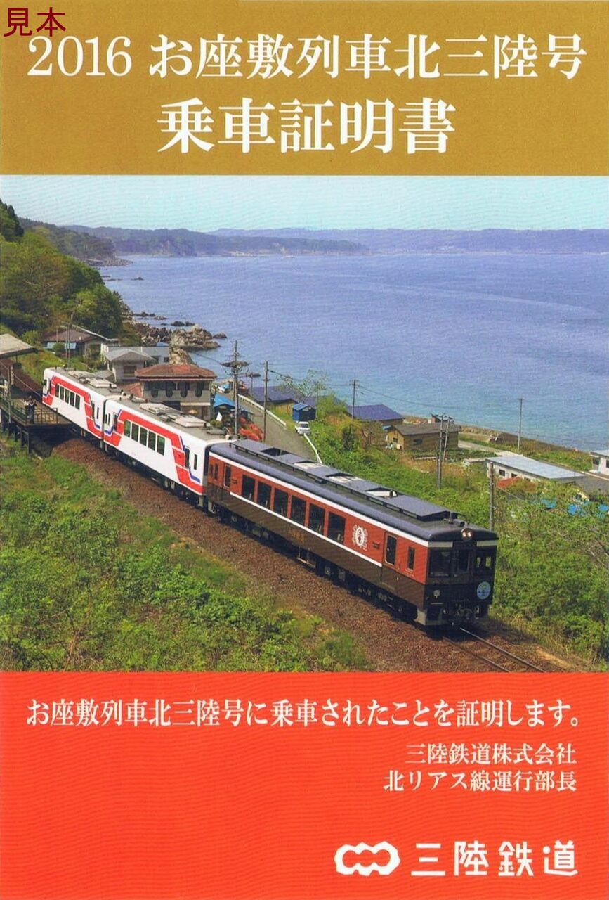 ポストカードサイズの乗車証明書。《琥珀入りのしおり(お座敷列車北三陸号デザイン)(2016年4月29日〜)》