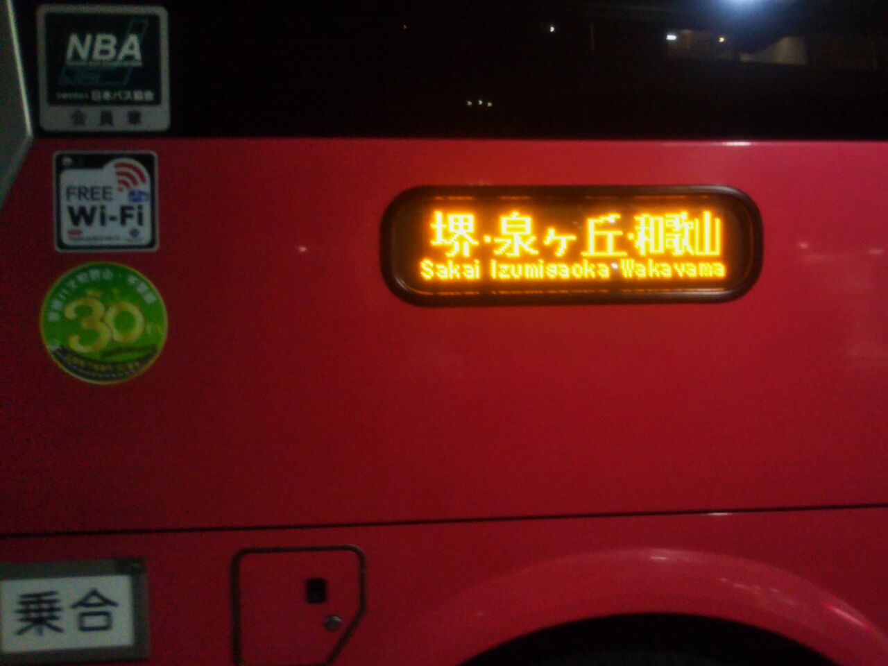 方向幕です。主な経由地と『和歌山』を表示。〔プレミアムシート〕
