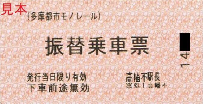 他路線との接続のない駅で発行された振替乗車票には多摩都市モノレールオリジナル地紋のものが未だ使用されています。