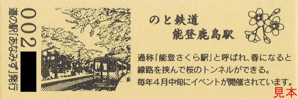 裏面はのと鉄道能登鹿島駅の紹介文とイラストです。【関連記事】