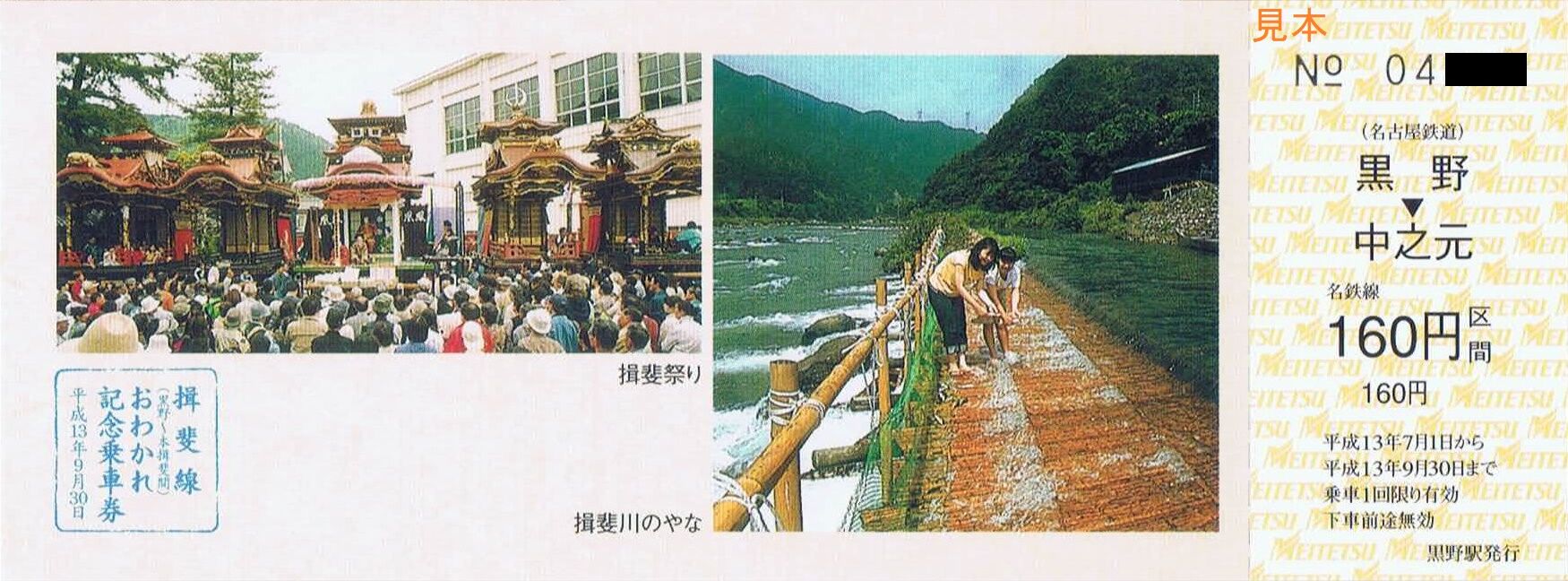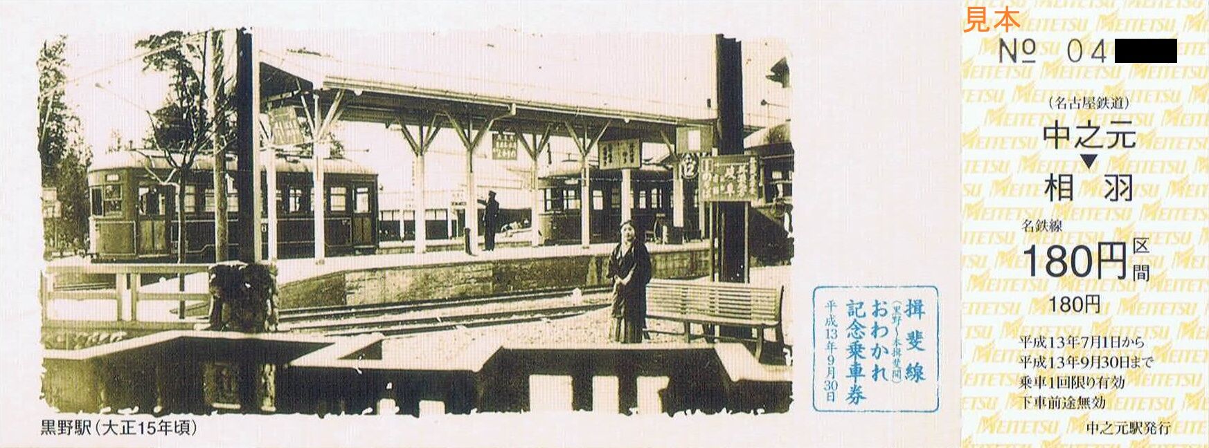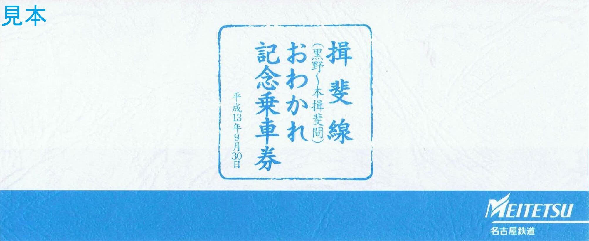 《揖斐線(黒野〜本揖斐間)おわかれ記念乗車券(平成13年7月1日発売)》