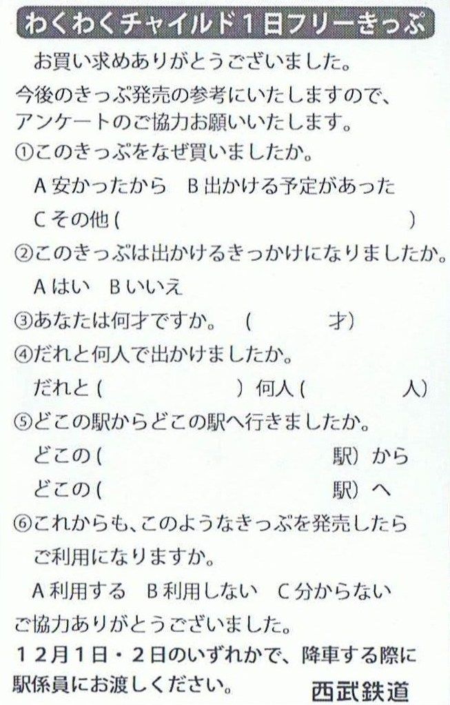 《わくわくチャイルド1日フリーきっぷ(平成24年12月1〜2日の1日有効)》