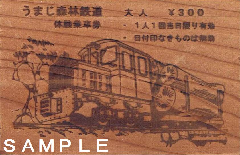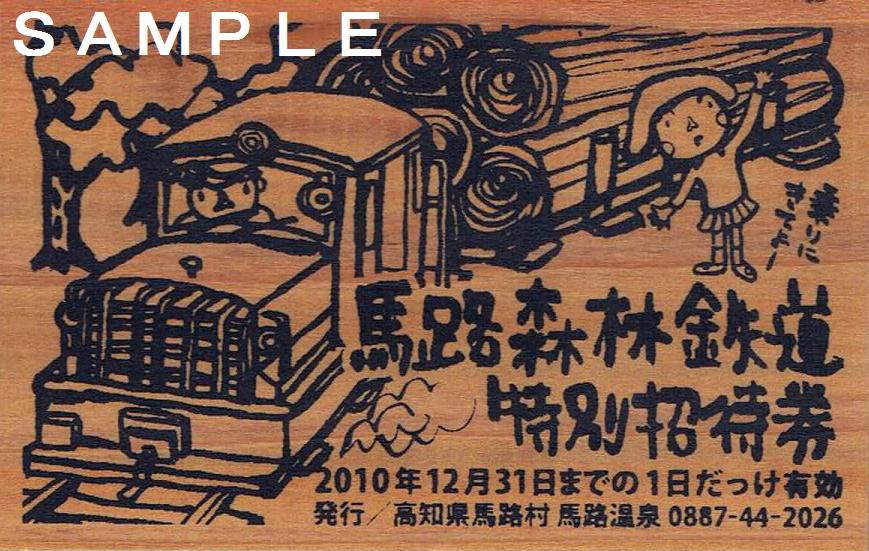 馬路村産の魚梁瀬杉を使用した厚みのある乗車券で、馬路村の魚梁瀬森林鉄道関連施設開業前に同村が視察を行った長野県上松町赤沢森林鉄道の乗車券をかなり参考にしているようです。