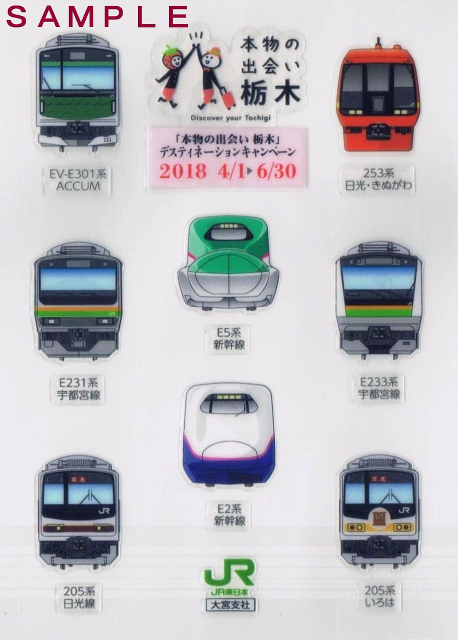 DC初日の栃木県庁内イベントで庁内のスタンプラリーが開催され、全5箇所を押印すると栃木県内の鉄道事業者グッズを1つ貰えるというもの。各社、なかなか魅力的なグッズを揃えていました。『いろは』と東武直通特急『日光・きぬがわ』のデザインに魅力を感じ、このシールにしました。やはりセンターは新幹線ですが…――――――――――――――――――――――――――――――――――――――