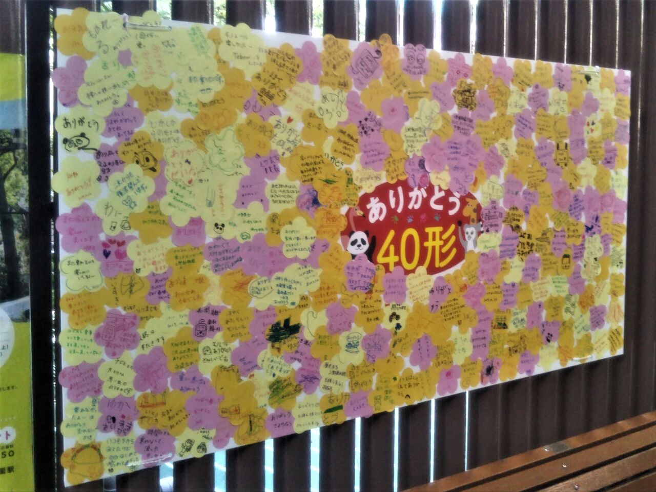写真左は東園駅に展示されたメッセージボード。募集していたありがとうメッセージを26日のイベント時に貼り付けして作成されたもの。
