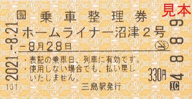 《三島駅発行 ホームライナー沼津2号(2021年(令和3年)8月21日発行)》