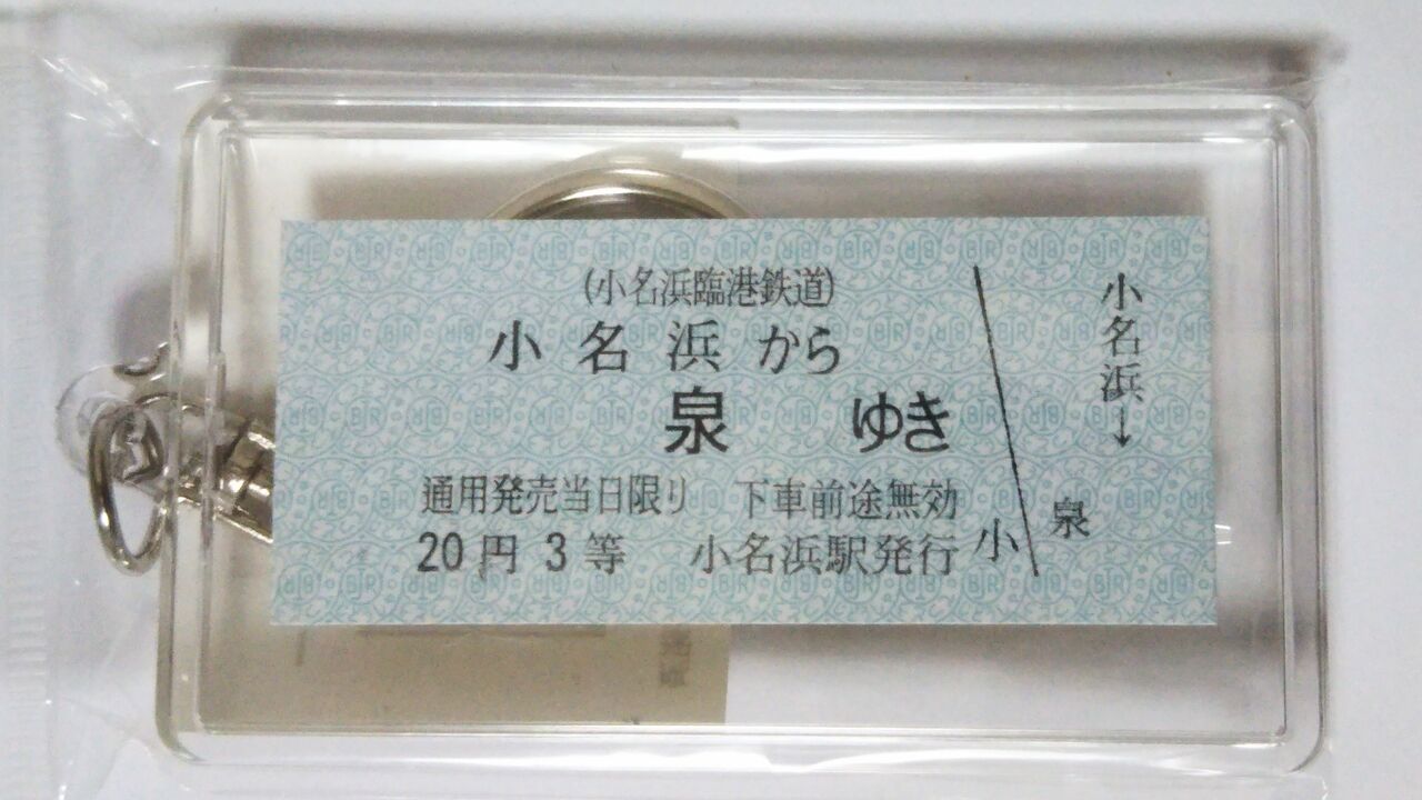 JRバス関東東京駅売店にて税込660円で販売されていたキーホルダーです。写真左は商品表側。写真右は商品裏面のシール部分。小名浜臨港鉄道は福島臨海鉄道の旧社名。元々は純粋な民間企業(第2セクター)でしたが、臨海鉄道化前の昭和39〜41年に福島県、国鉄が出資。昭和42年に現社名へと変更されました。