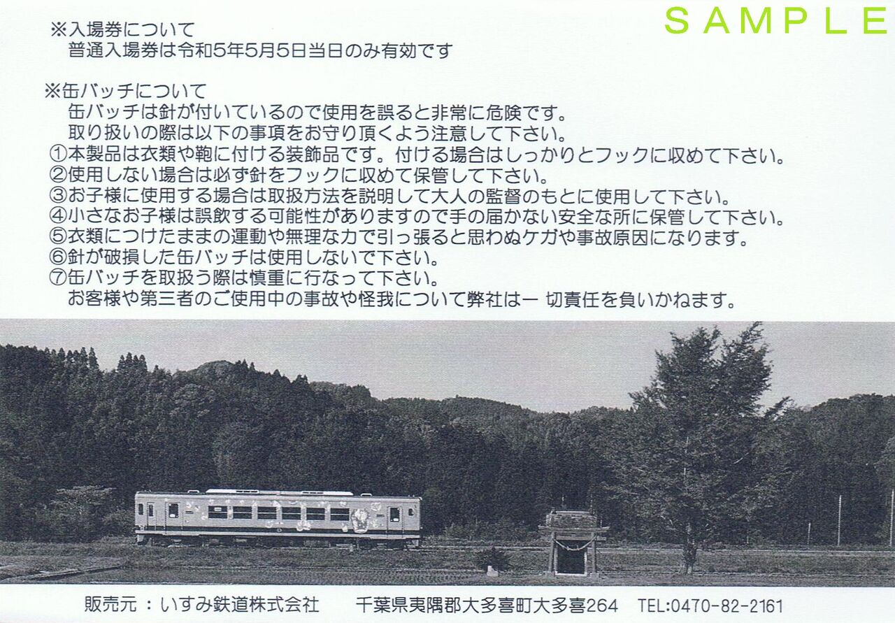 日付並びを記念してAセット・Bセットの2種類を発売。セット構成はB型硬券入場券2枚、ポストカード1枚、缶バッジ1個で、Aセットのポストカードと缶バッジのデザインはいすみ200形・300形・350形。各150セット限定で1セット・税込700円。