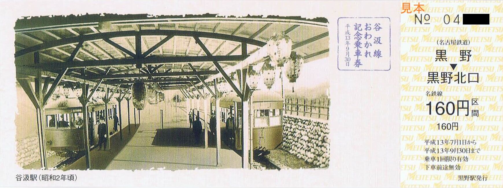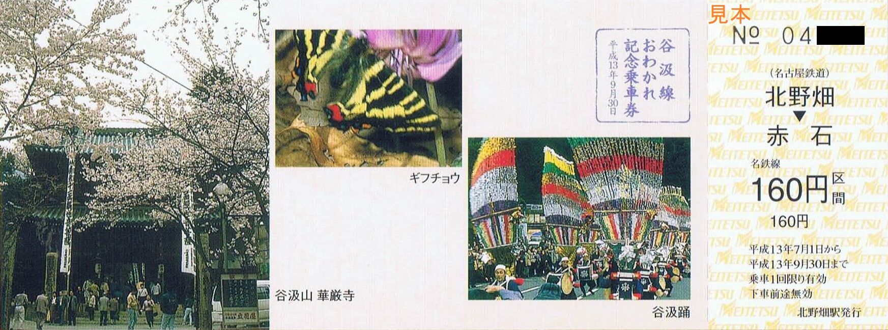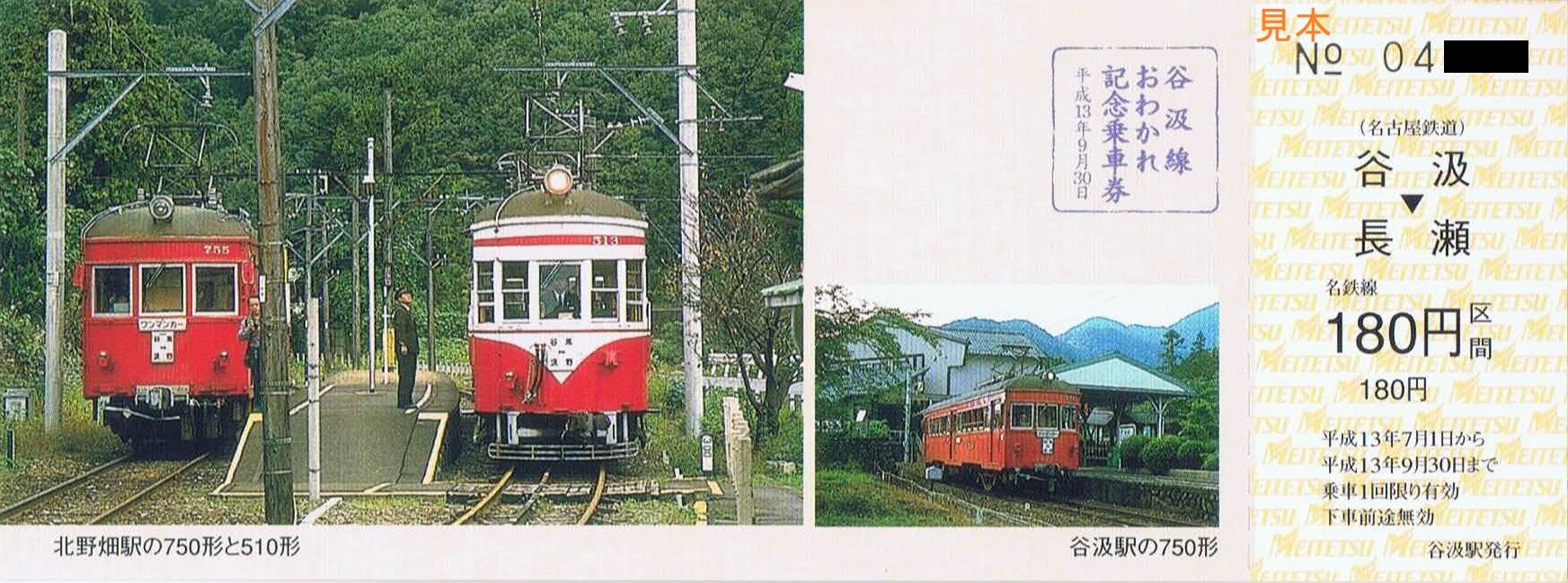 《谷汲線おわかれ記念乗車券(平成13年7月1日発売)》