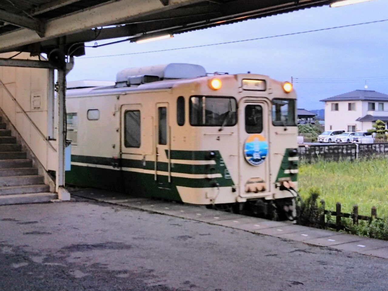 写真右は光風台駅に入線する23A列車・月崎行。キハ40形・2両編成の月崎寄り(男鹿線色。五井寄りはキハ40 3・タラコ色)にのみ掲出されていました。