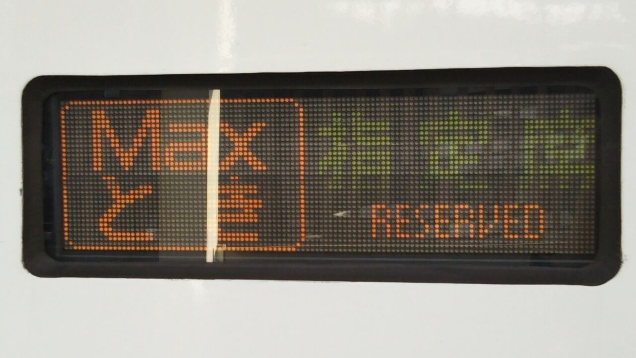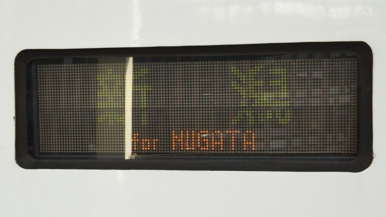 平日午後で中高生くらいのマニアの姿もありました。写真左は入線時。写真右上・右下は方向幕。