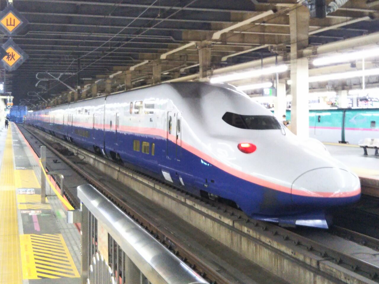 大宮駅ではすぐに発車しませんでした。この先の区間において強風のため飛来物があり、その除去作業後に運転再開との放送がありました。停車時間が長くなったため、逆にゆっくり撮影できてしまいました。