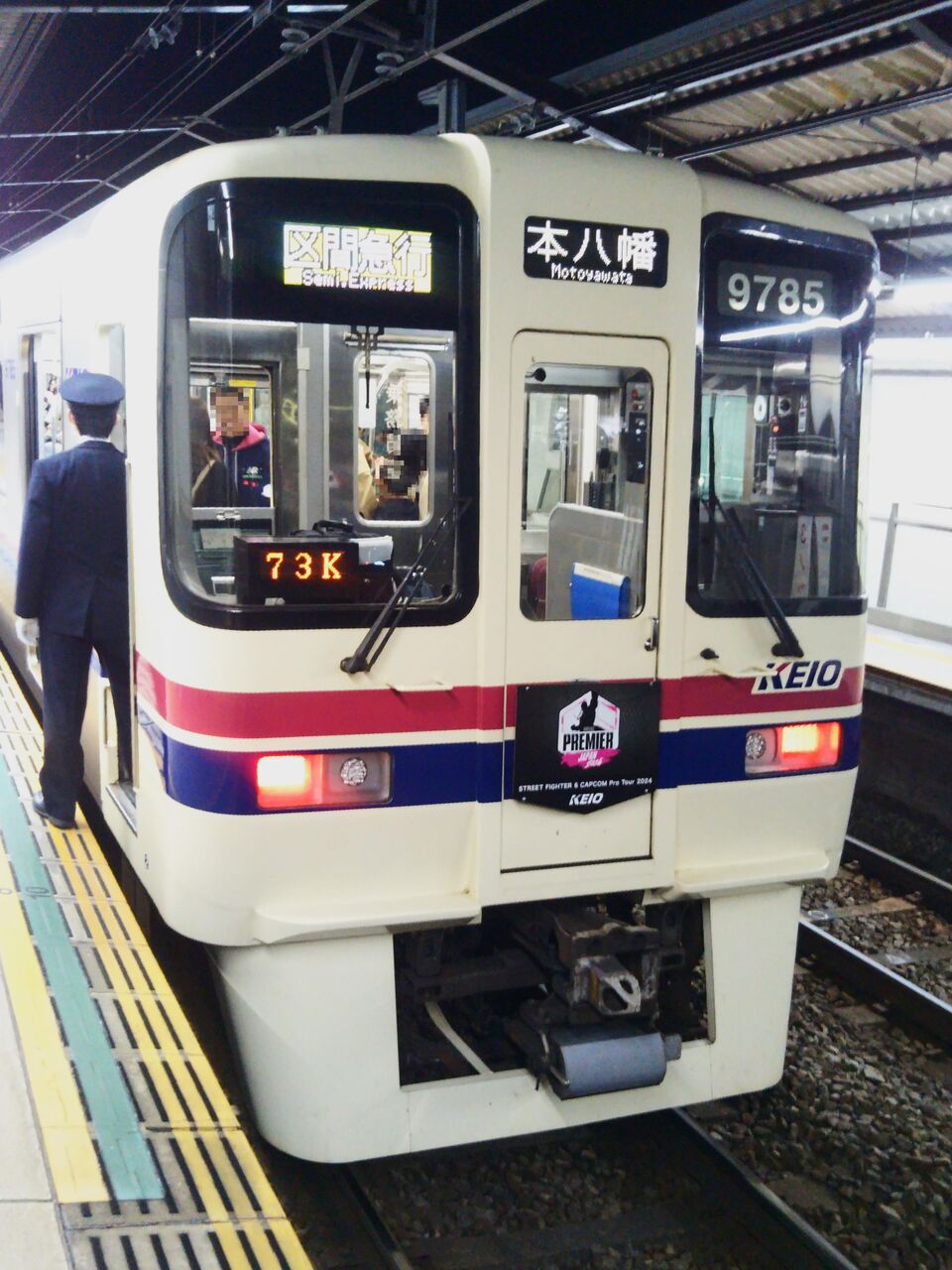 同年11月3日に相模原線京王稲田堤駅にて撮影した区間急行・本八幡行の運用に就く大会コラボヘッドマーク付き列車。同大会最終日にようやく見ることが出来ました。写真右はヘッドマークです。【関連記事】