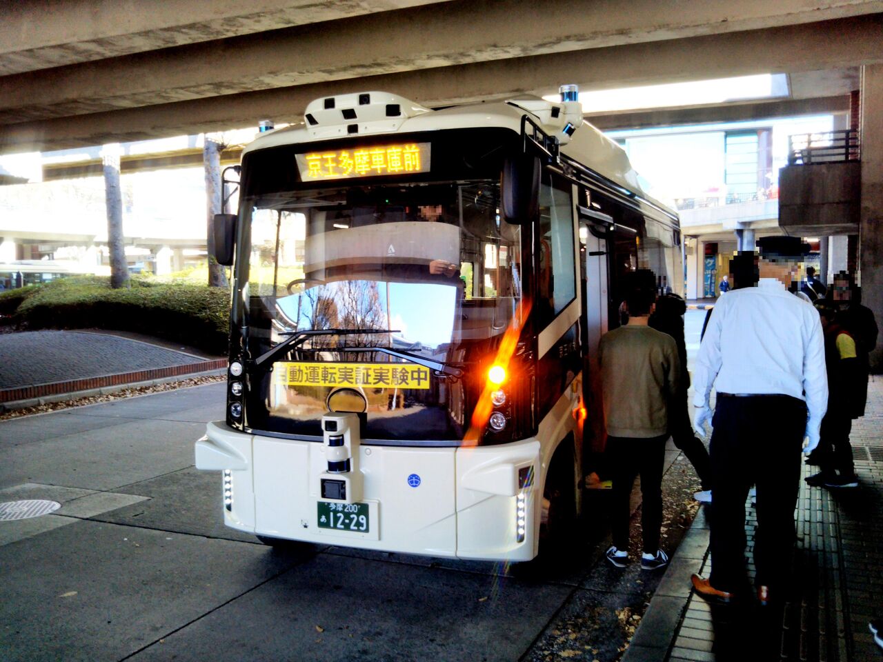 京王多摩車庫前から多摩センター駅まで乗車。意外にも乗客の半数以上は家族連れの方でした。自動運転時のブレーキがやや強めであるため、全員着席した状態での運行となります。