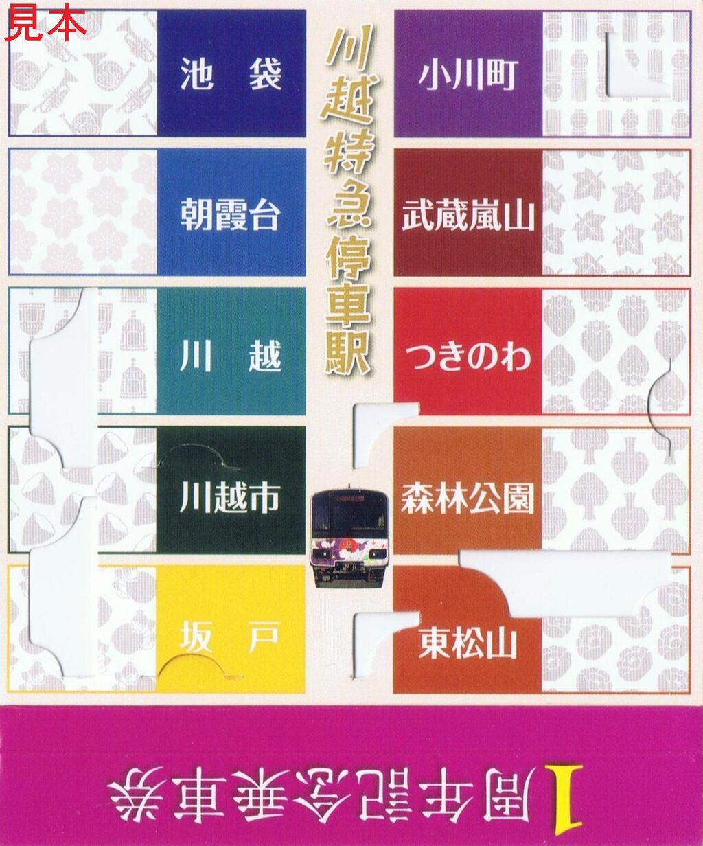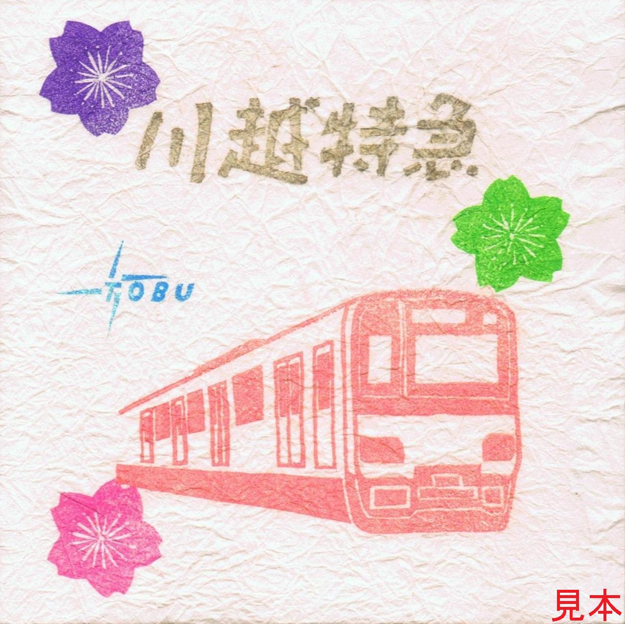 購入特典として和紙使用のスタンプ帳(写真左は表面、右は裏面)が付きます。スタンプ帳表紙は50090型がデザインですが、色は東上線発売駅がオレンジ、東武本線発売駅が青と分けられています。私は東上線の駅で購入しています。