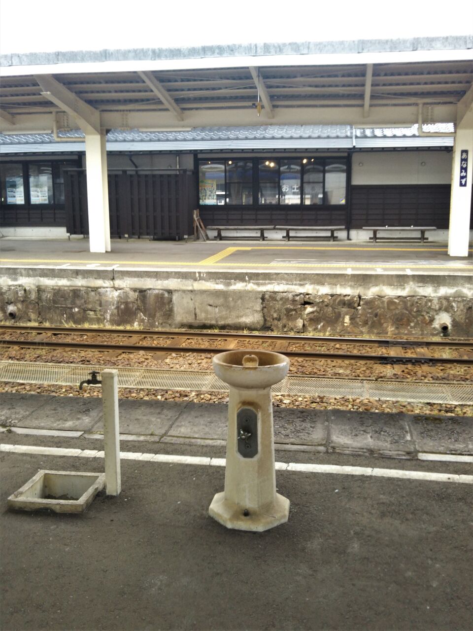 2・3番ホーム上に残るレトロな水飲み場。