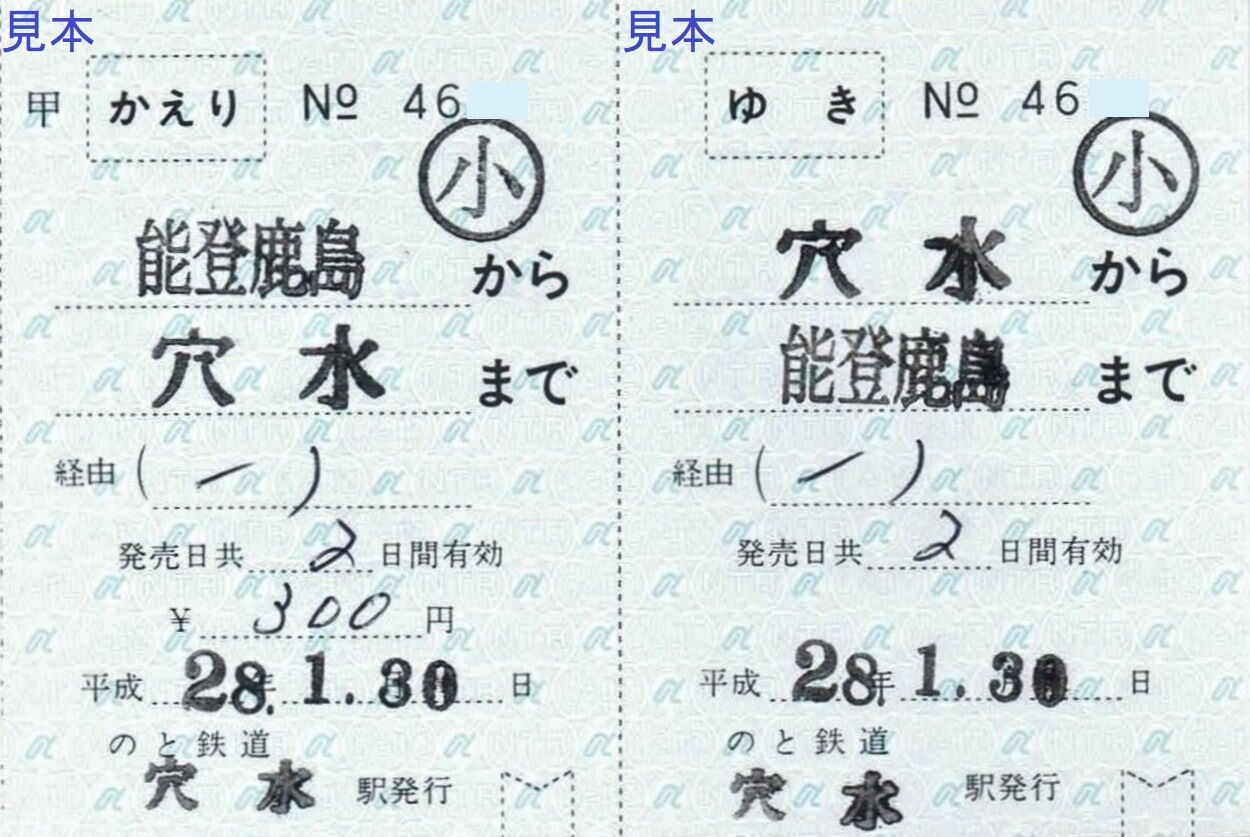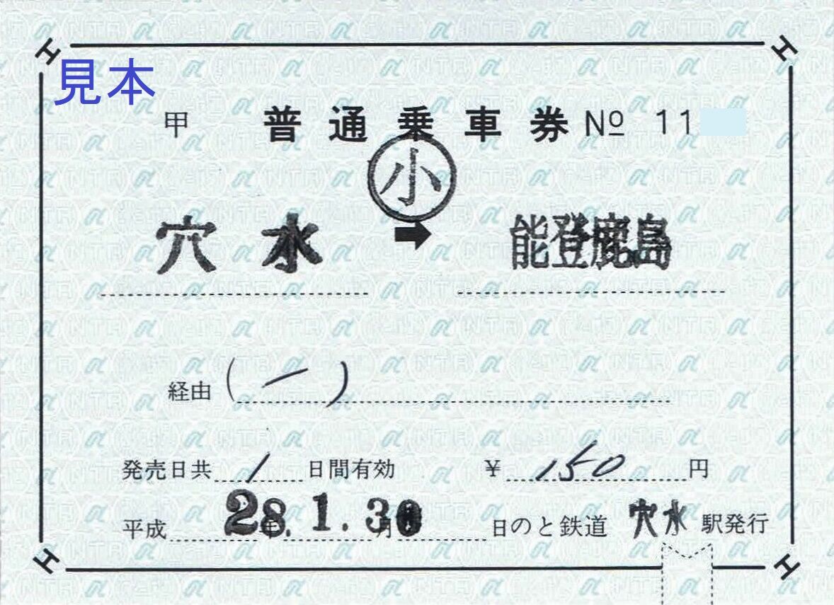 《穴水駅発行 補充乗車券(平成28年1月30日収集)》