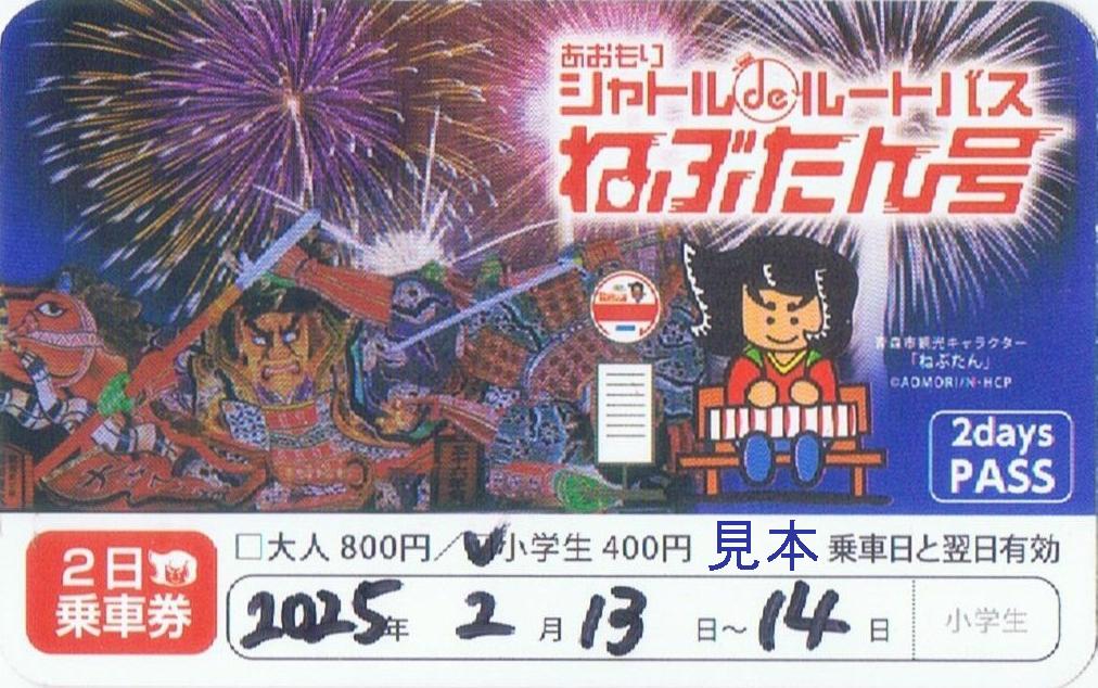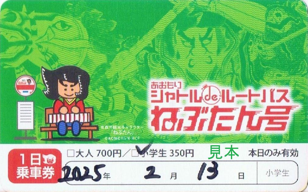 あおもりシャトルdeルートバスねぶたん号のフリー乗車券(紙券)は1日乗車券と2日乗車券の2種類あります。新青森駅構内(2階・改札外)のあおもり観光情報センターで発売しています。小学生・大人と金額が異なりますが、同じ券を使用しており、チェック箇所が異なるだけです。