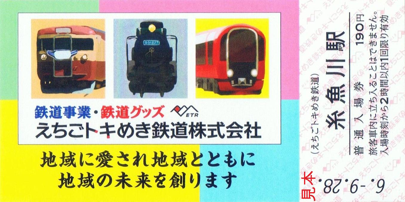 3種類(直江津駅、高田駅、糸魚川駅)あり、各1枚190円です。台紙は付きません。