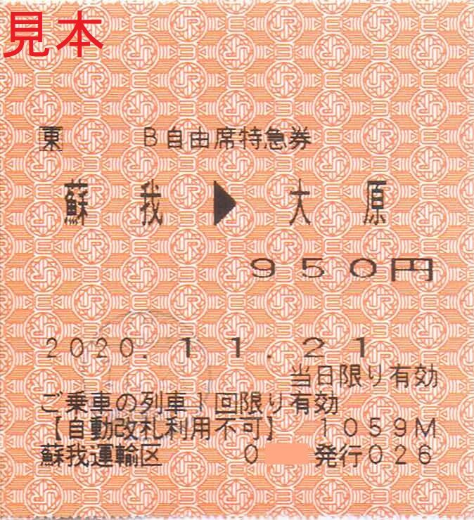 《蘇我運輸区発行 B自由席特急券 1059M(わかしお9号)(2020(令和2)年11月21日)》
