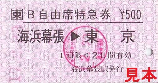 《海浜幕張駅発行 B自由席特急券 海浜幕張→東京(2005(平成17)年2月23日)》