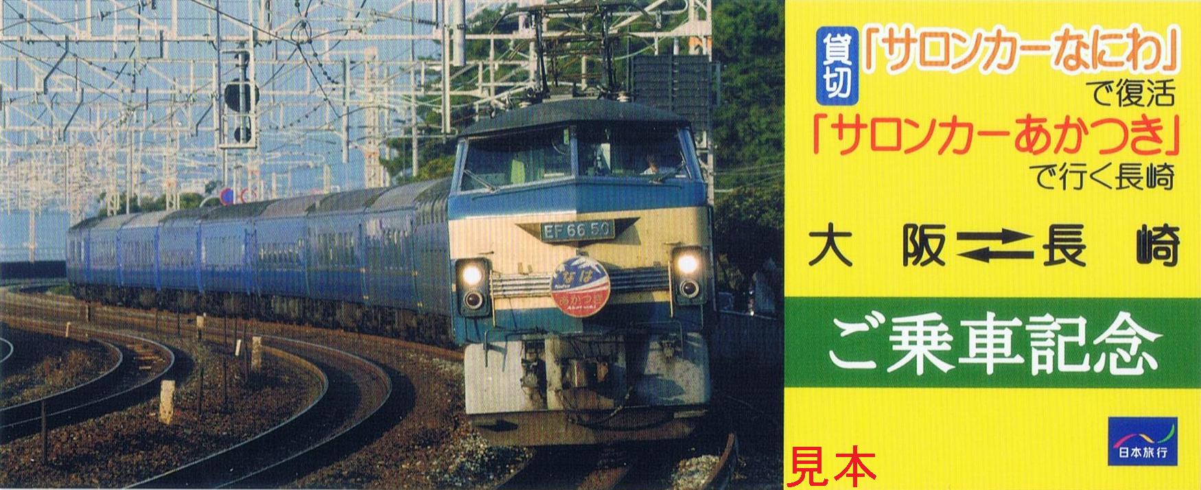 日本旅行は客車『サロンカーなにわ』を使用した寝台特急あかつき号のリバイバルトレイン『サロンカーあかつき』(東海道本線、山陽本線、鹿児島本線、長崎本線)利用の旅行商品『サロンカーあかつきで行く長崎』(2016(平成28)年11月25〜28日催行)を発売しました。サロンカーあかつきは団体専用臨時列車で、JR西日本に所属するサロンカーなにわがJR九州区間に乗り入れました。