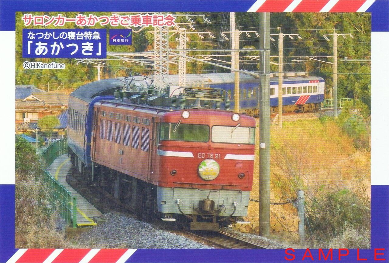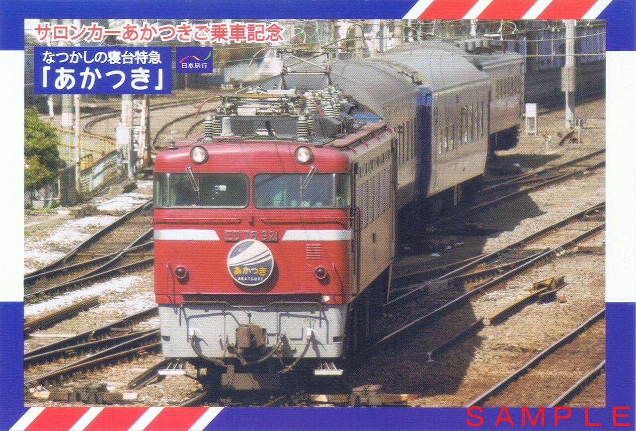 ご乗車記念ポストカードは9枚セットです。あかつきのヘッドマーク・テールマークを装着(一部の写真除く)した機関車・客車の写真を使用しています。
