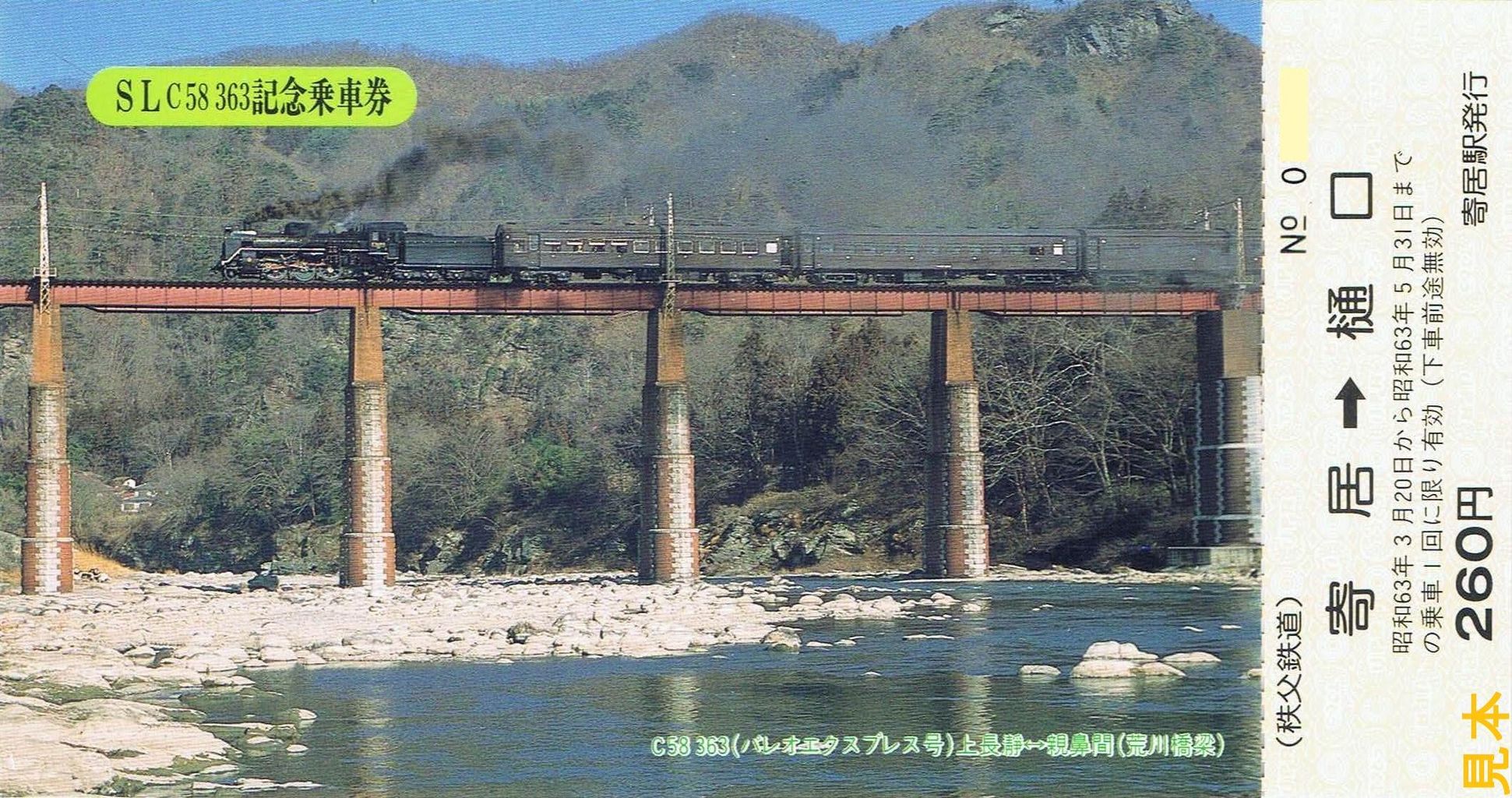 パレオエクスプレス運行開始当初('88さいたま博覧会開催期間中)のSL整理券で、記念のヘッドマークを装着したC58 363の写真を使用しています。――――――――――――――――――――――――――――――――――――――