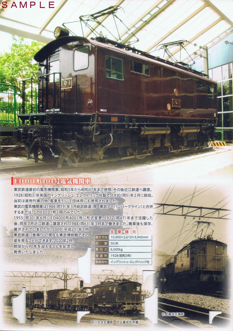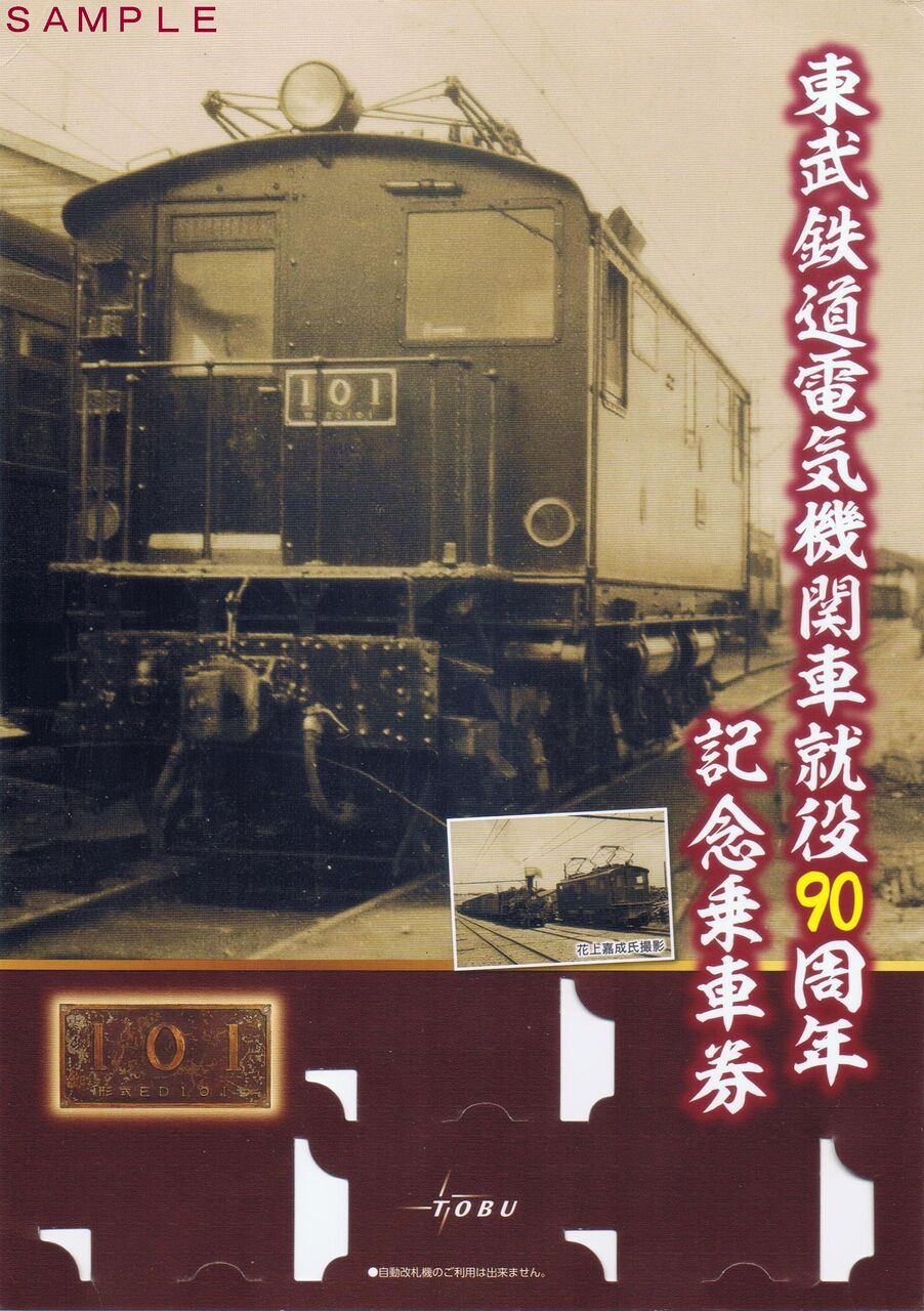 電気機関車・ED101形101号機の就役90年を記念して台紙(写真左は表面、右は裏面)とB型硬券地図式乗車券3枚セットで発売。1セット1,000円。2,000セット限定。東武本線38駅にて発売されました。