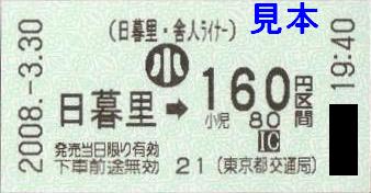 写真は日暮里駅券売機で購入した乗車券です。