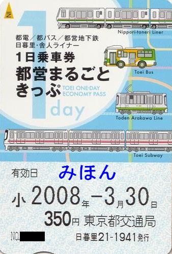 《都営まるごときっぷ(当日券)(平成20年3月30日購入)》