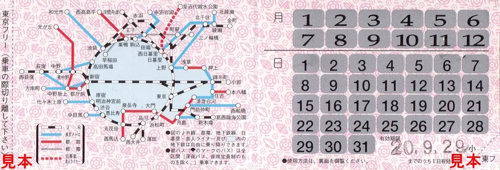 《東京フリーきっぷ(東京都交通局)(平成20年3月30日購入)》