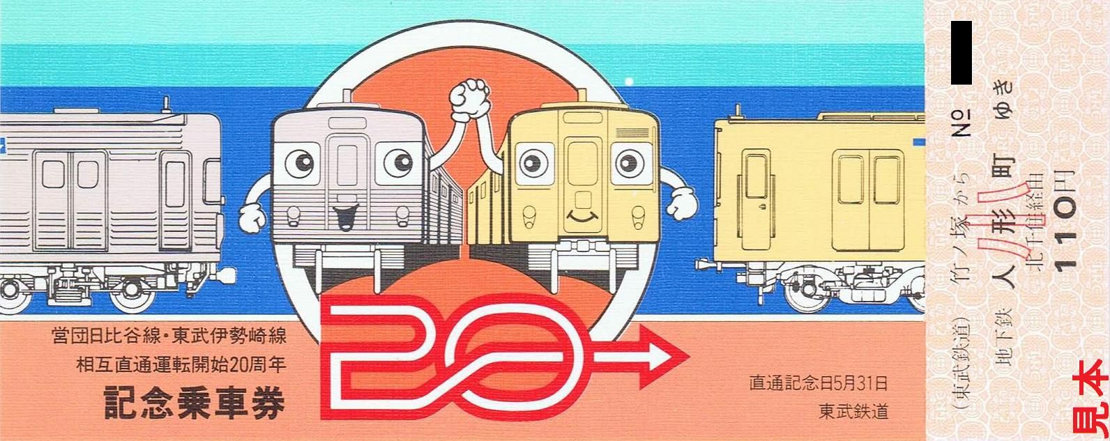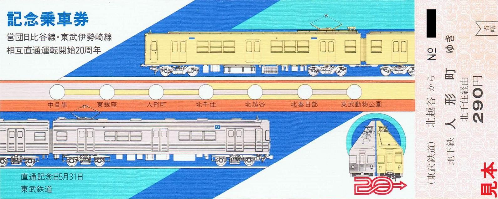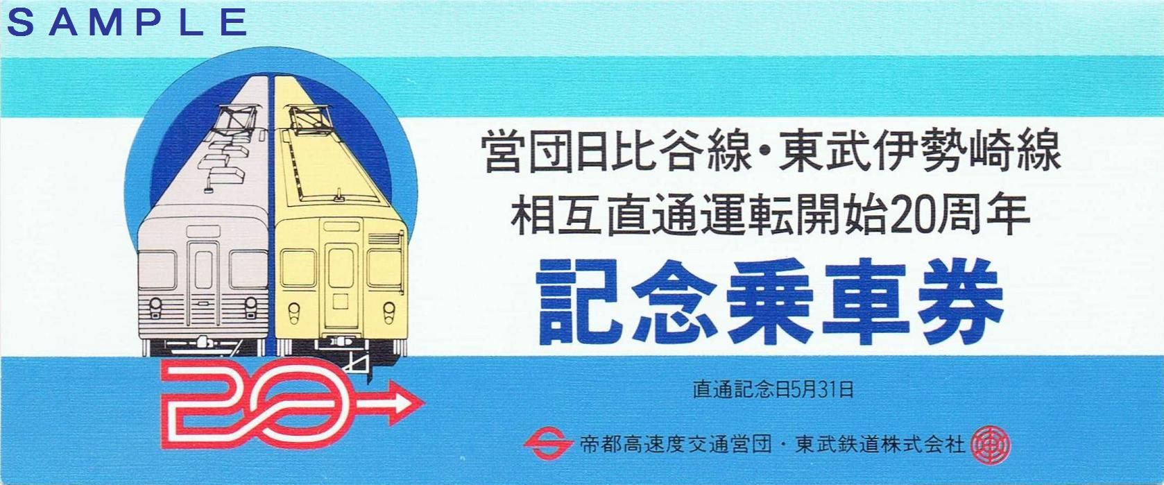 《営団日比谷線・東武伊勢崎線相互直通運転開始20周年記念乗車券(昭和57年5月)》