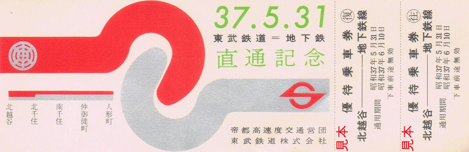 《東武鉄道=地下鉄直通記念優待乗車券(昭和37年5月)》