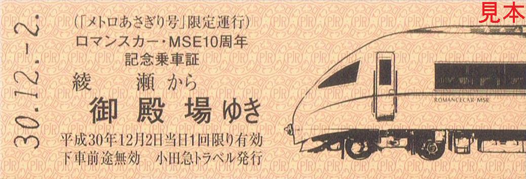 《ロマンスカー・MSE10周年記念乗車証(D型硬券)》