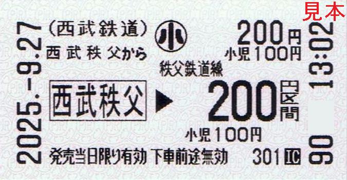 ※2025年10月01日更新(西武秩父駅乗車券。写真H29・R6)