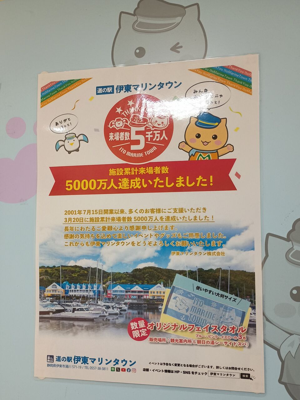 写真左は道の駅伊東マリンタウン内に掲出された来場者数5千万人突破記念のポスターです。非常におめでたい内容ですが‥