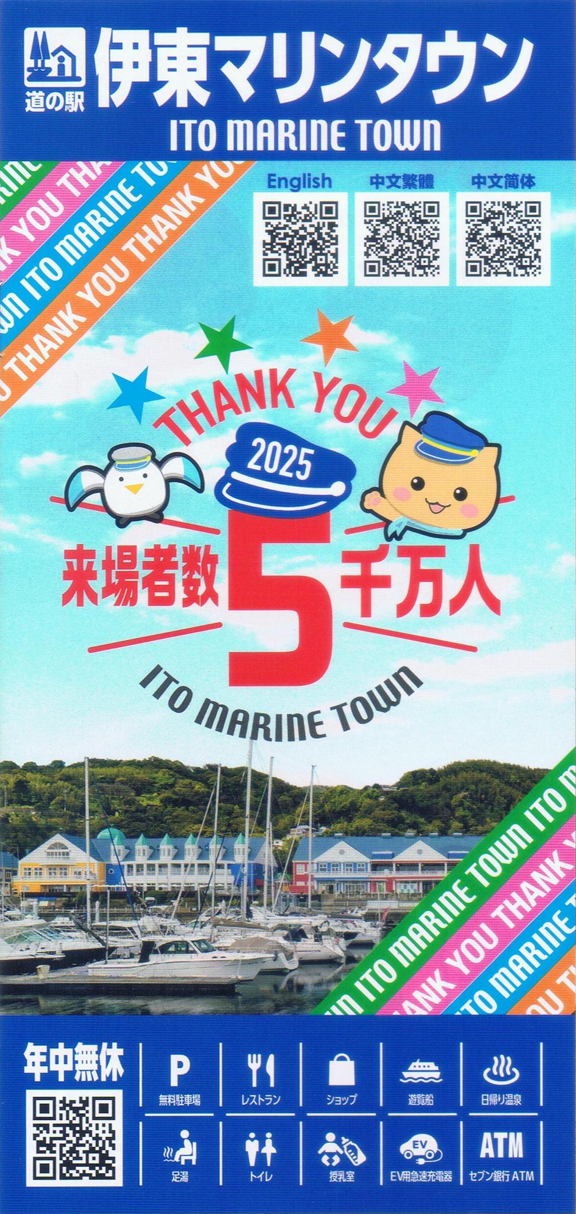 表紙に来場者数5千万人突破記念ロゴ入り。《伊東マリンタウンパンフレット(2025(令和7)年10月発行)》
