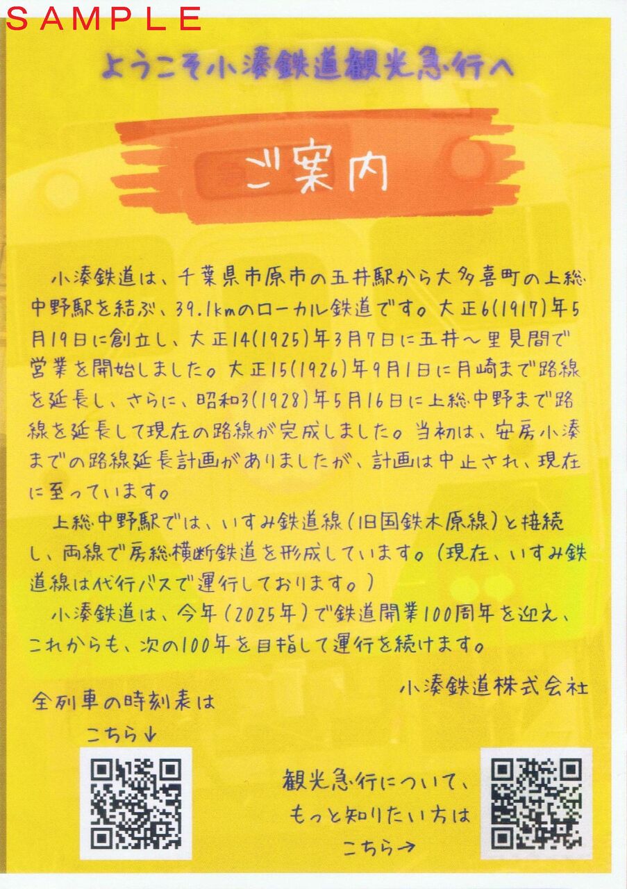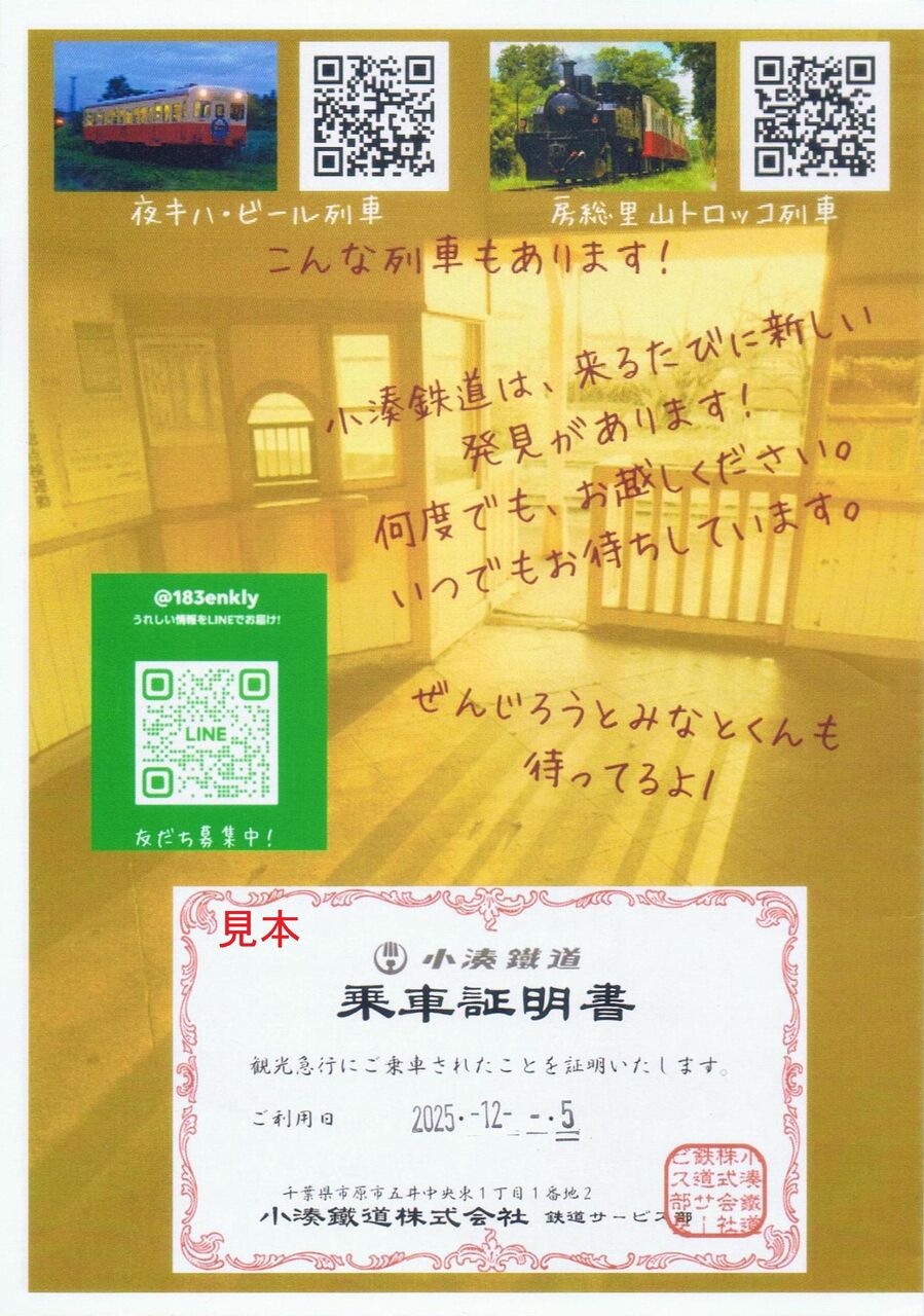 《小湊鉄道観光急行乗車証明書(2025(令和7)年12月5日収集)》