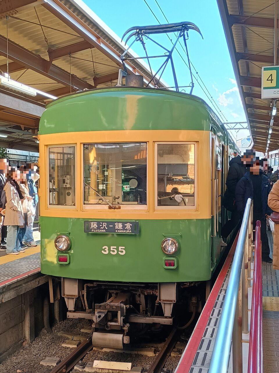 小田急電鉄の特急ロマンスカー・えのしま号で藤沢駅に到着後、先述ののりおりくん・干支入場券を購入。東海道本線で大船駅へ移動。湘南モノレールのヘッドマーク付き列車『〜干支スタンプ〜お正月記念号』に湘南江の島駅まで乗車後、江ノ島電鉄江ノ島駅へ移動。ここからのりおりくんを初めて使用しますが鎌倉駅までの片道1回のみの利用で終わりました。乗車した2000形の江ノ島駅停車時の方向幕は正月仕様で行先と『あけましておめでとうございます』の表示。ヘッドマークではありませんが正月ならではの江ノ電のお楽しみです。昼過ぎの利用でしたが乗客の大半が外国人観光客。他は初詣客でした。