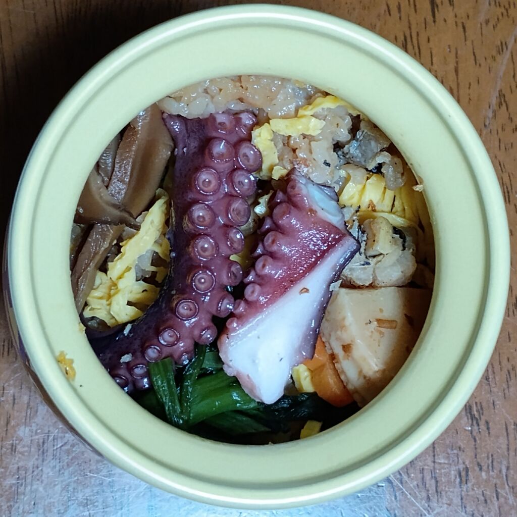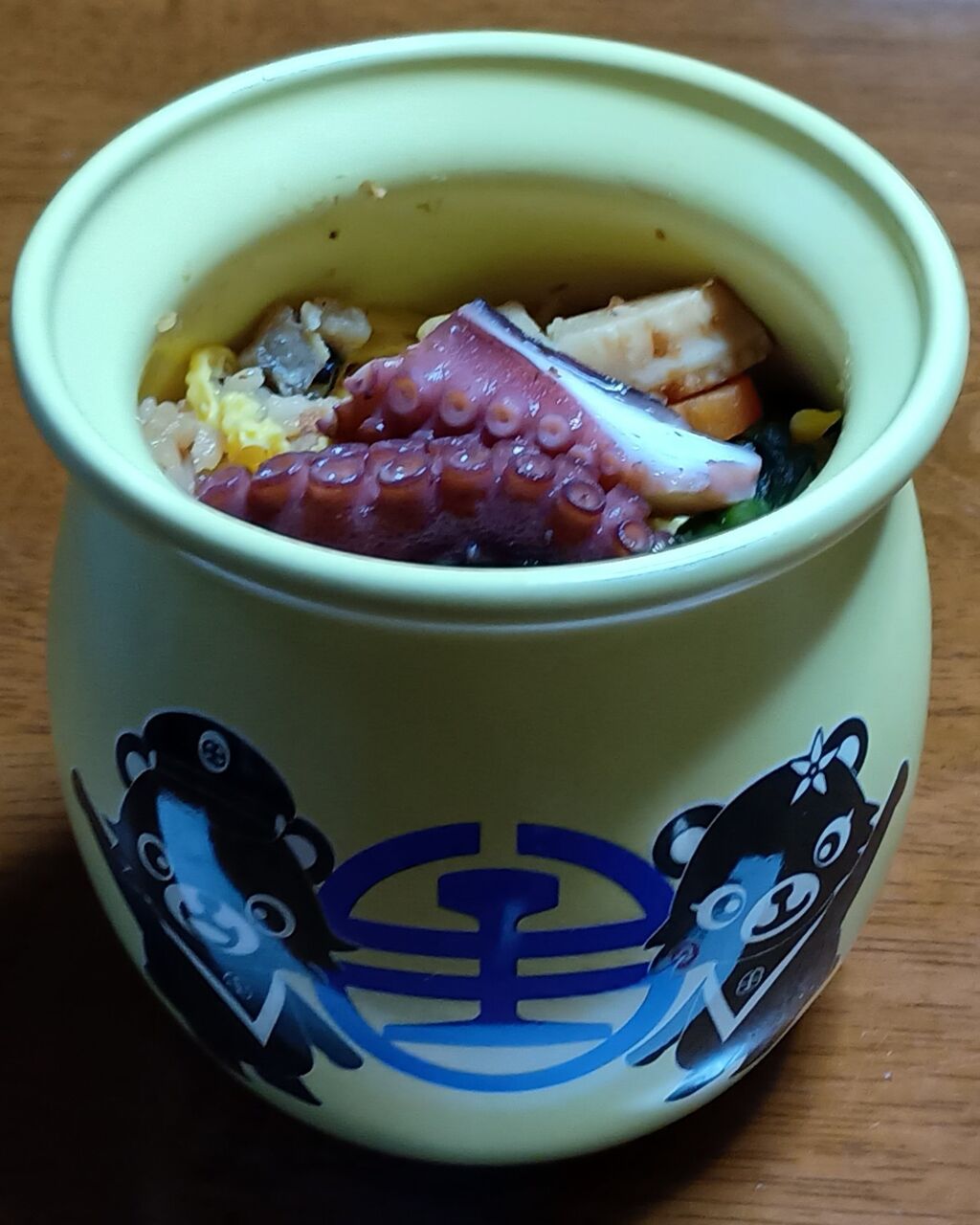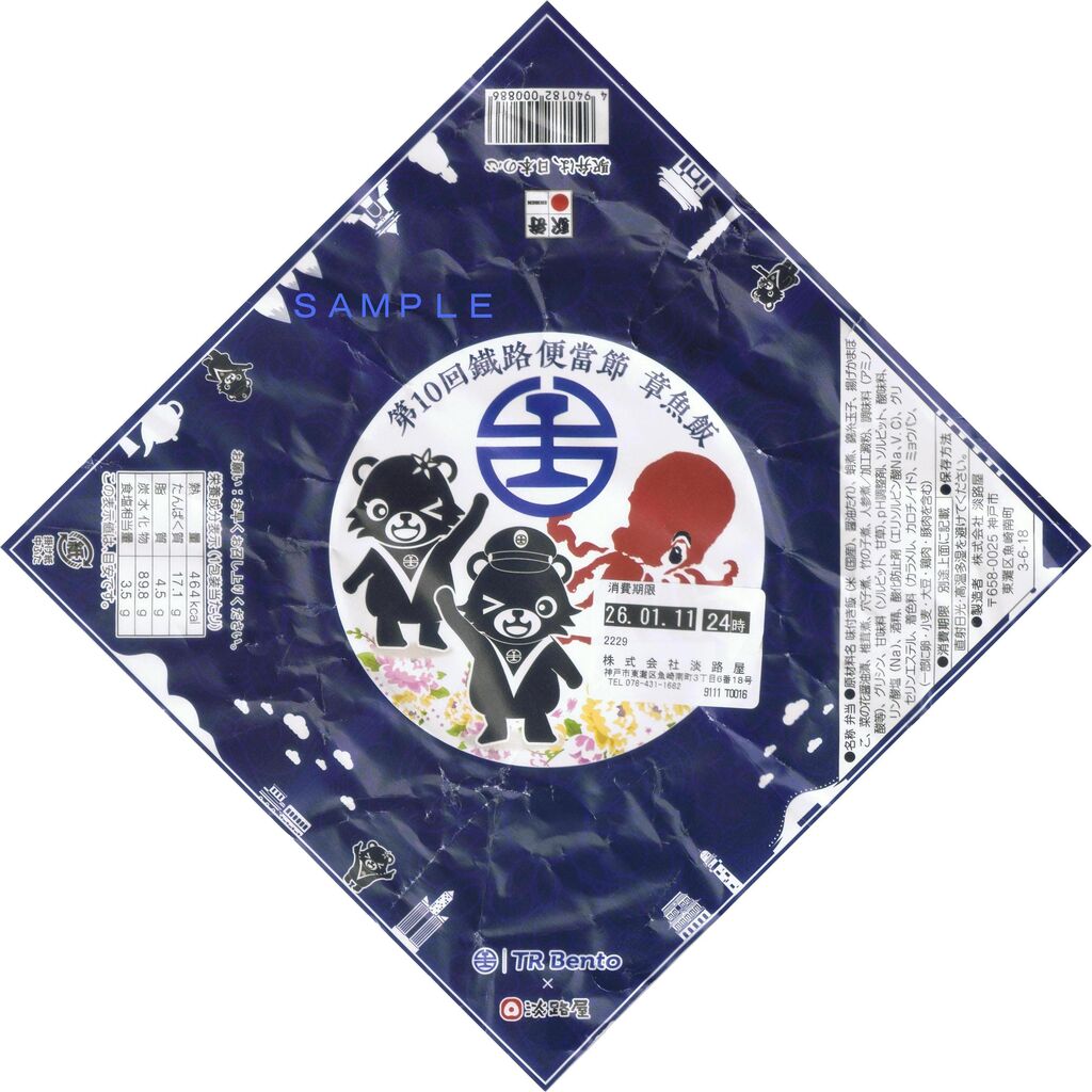 淡路屋と台湾鉄路股份有限公司(台鉄)が締結している友好協定の一環として台鉄の駅弁販売促進キャラクター「テル」と「ハナちゃん」を描いた限定デザインの掛紙・壺を使用したひっぱりだこ飯。台鉄主催の『第10回鐵路便當節』開催に合わせて日台で同時発売されました。税込1,680円。発売箇所は日本が淡路屋各店(新神戸店、西明石店、神戸阪急店、阪神梅田店、大阪高島屋店、京阪守口店、ラゾーナ川崎店等)、淡路屋オンラインストア。台湾は台北駅構内、第10回鐵路便當節開場内。私は京王百貨店新宿店『第61回 元祖有名駅弁と全国うまいもの大会』の輸送駅弁として購入しました。写真左は掛紙。写真右は壺側面のデザインです。淡路屋調製の台湾鉄路関連駅弁は前回の『友好協定締結記念ひっぱりだこ飯』発売時(下記リンク記事参照)には友好協定の相手が『管理局』でしたが、今回は『股份有限公司』に変わっています。