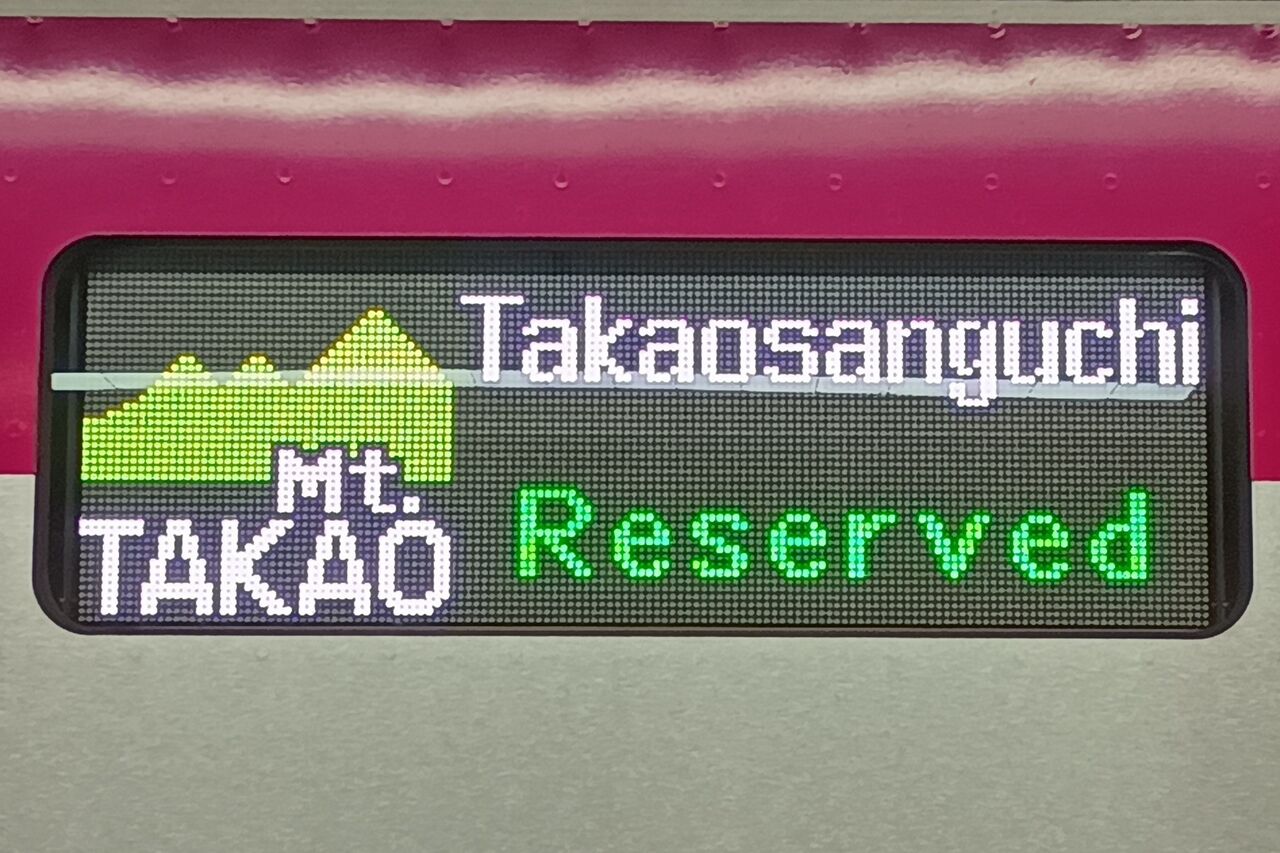 方向幕や駅の発車案内は通常通りMt.TAKAO。