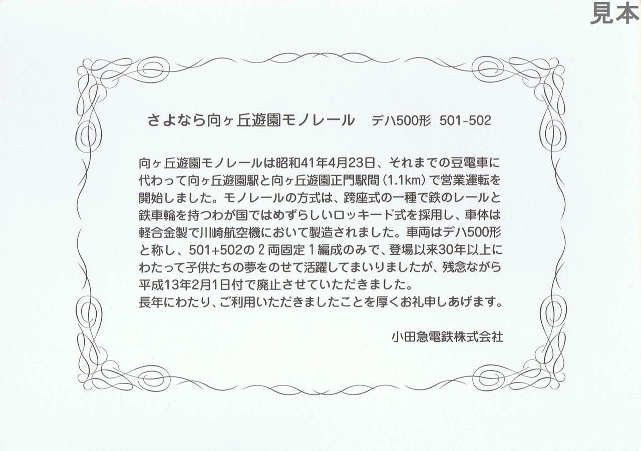 《さよなら向ヶ丘遊園モノレールパスネット(平成13年)》