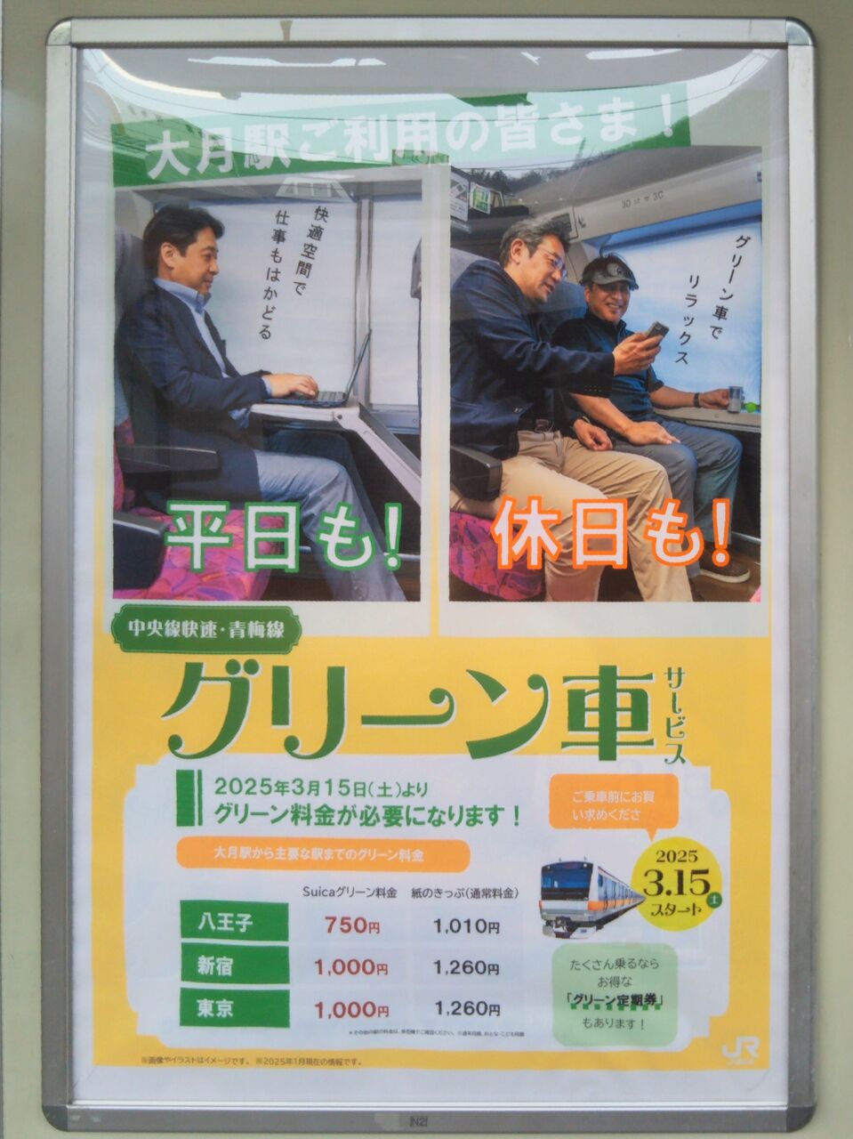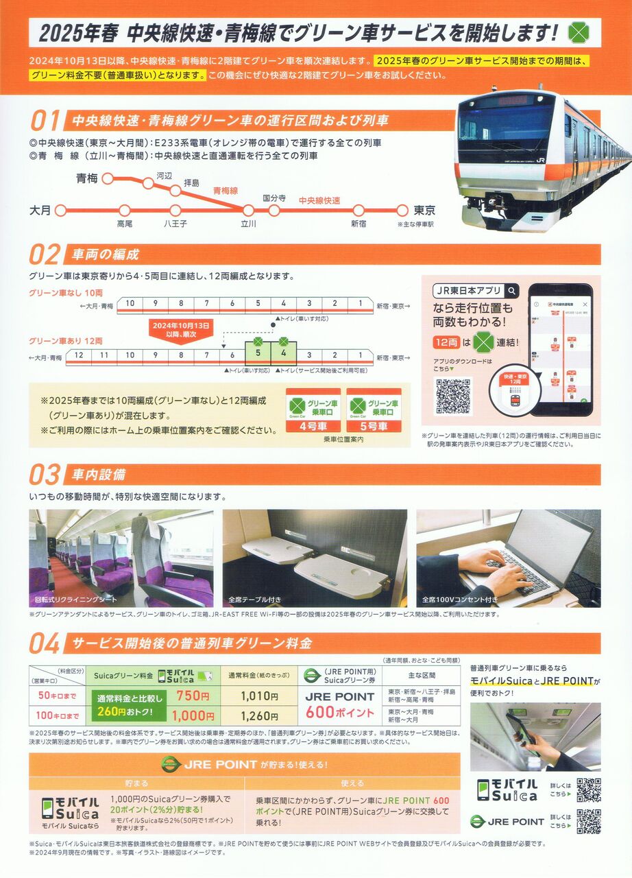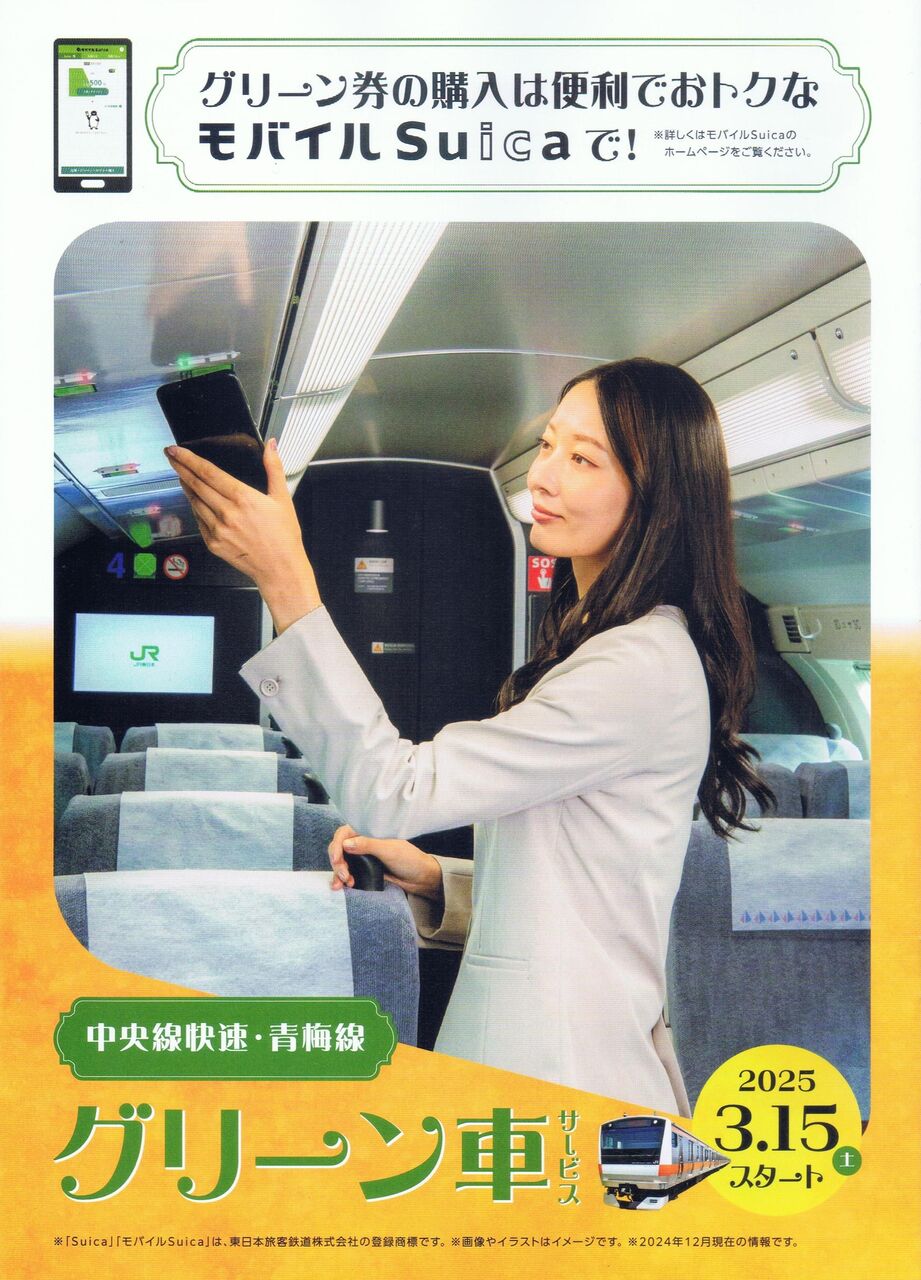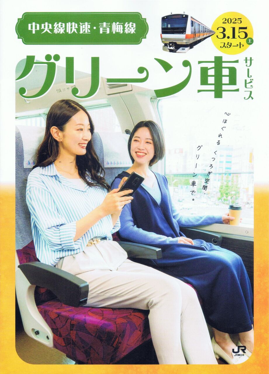 ¡¡Ãæ±û²÷®Àþ¤Î¥Û¡¼¥à¾åŽ¥¥°¥ê¡¼¥ó¼Ö¾è¼Ö°ÌÃÖÉÕ¶á¤Ç·¸°÷¤Ë¤è¤êÇÛÉÛ¤µ¤ì»Ï¤á¤¿A4¥µ¥¤¥ºŽ¥»°¤ÄÀÞ¤ê¤Î¥Ñ¥ó¥Õ¥ì¥Ã¥È¡£È¬²¦»Ò±Ø¤Î¤ß¤É¤ê¤ÎÁë¸ý¤Ç¤âÇÛÉÛ¤µ¤ì¤Æ¤¤¤Þ¤·¤¿¡£¡ÔÂç·î±Ø Chuo LIne Rapid service Green Car (First Class)Guide(2025ǯ(ÎáÏÂ7ǯ)3·îÇÛÉÛ)¡Õ