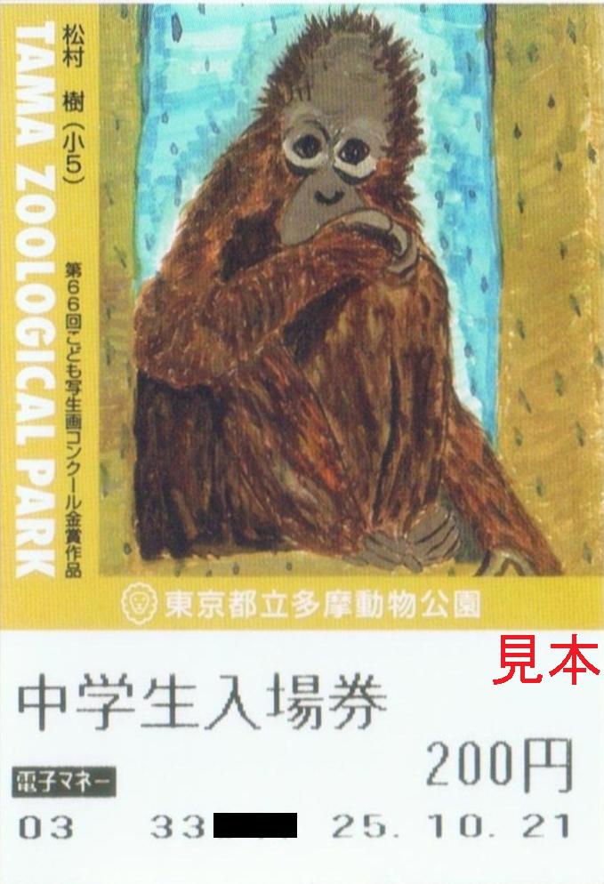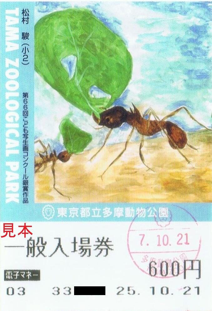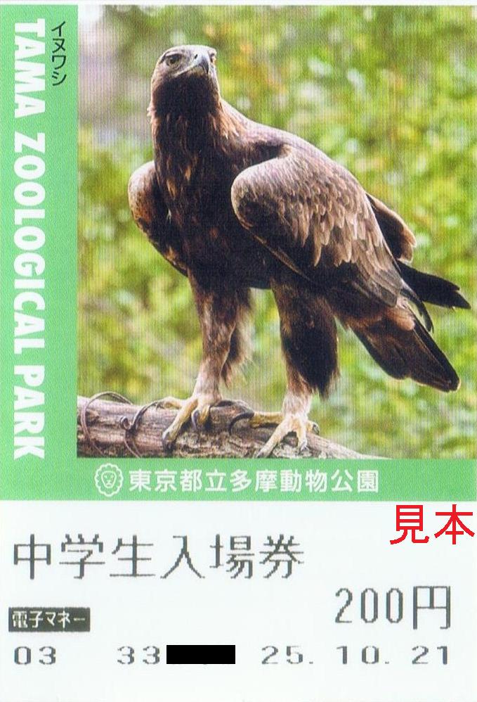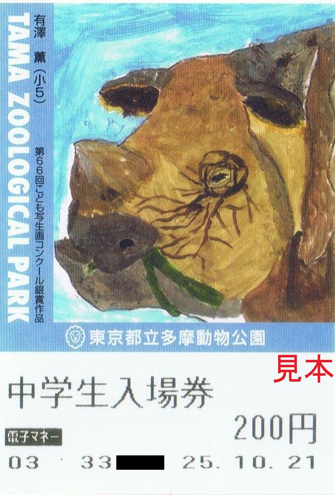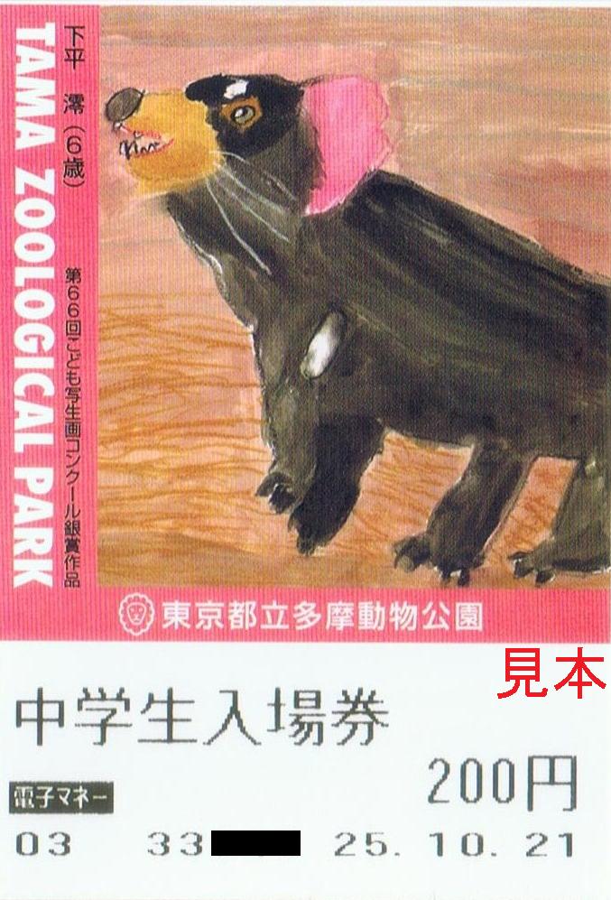 多摩動物公園シャトルバスは無料のため乗車券はありません。シャトルバス関連の配布品・記念品等も特にありませんので、多摩動物公園の入場券を掲載します。